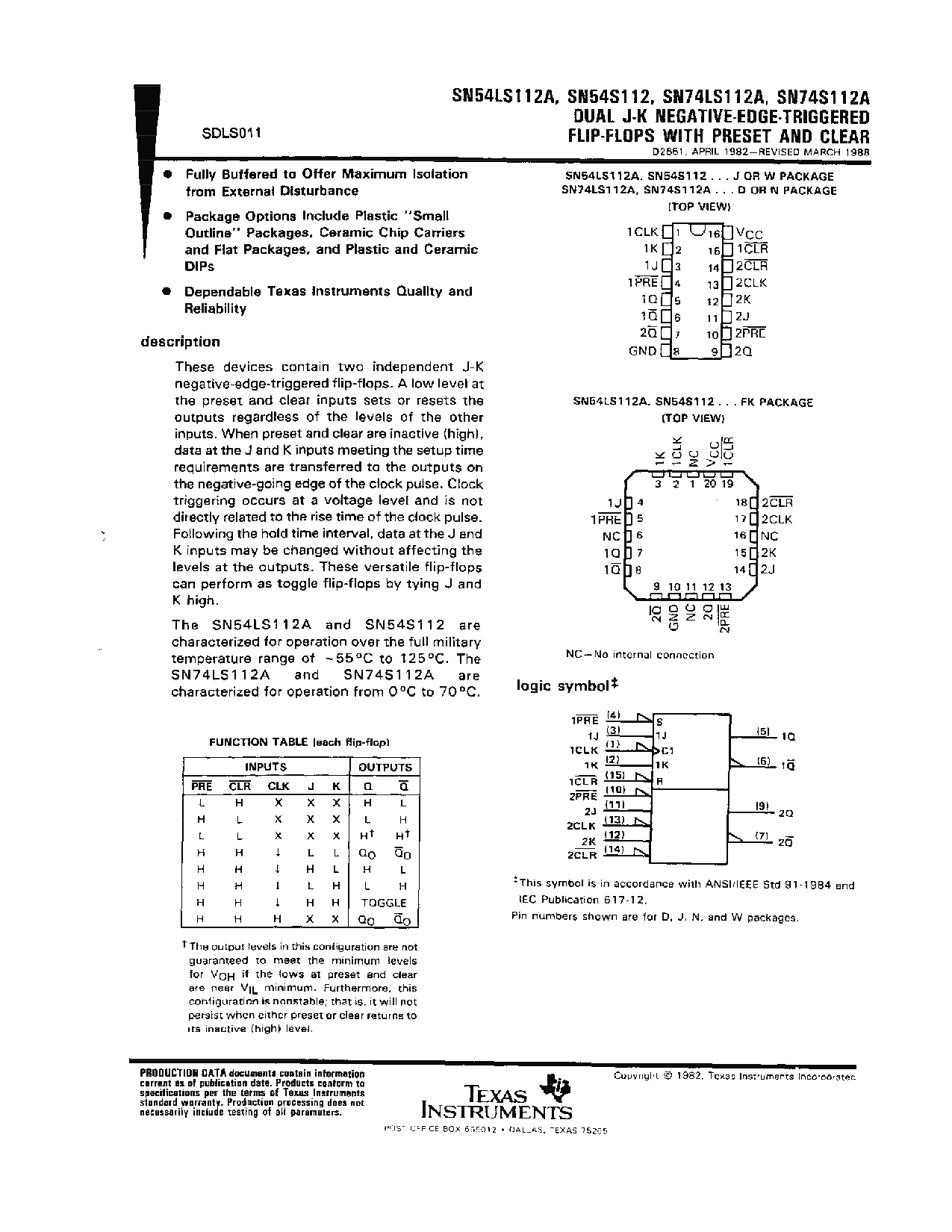 DUAL J-K NEGATIVE-EDGE-TRIGGERED FLIP-FLOPS WIITH PRESET AND CLEAR