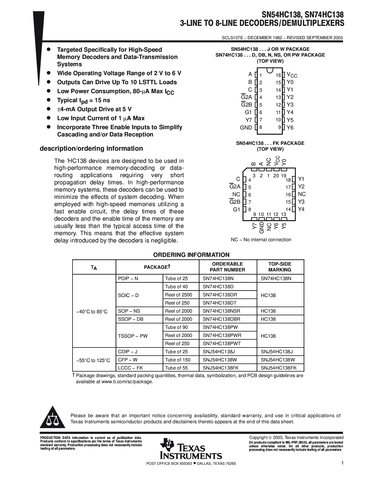 3-LINE TO 8-LINE DECODERS/DEMULTIPLEXERS