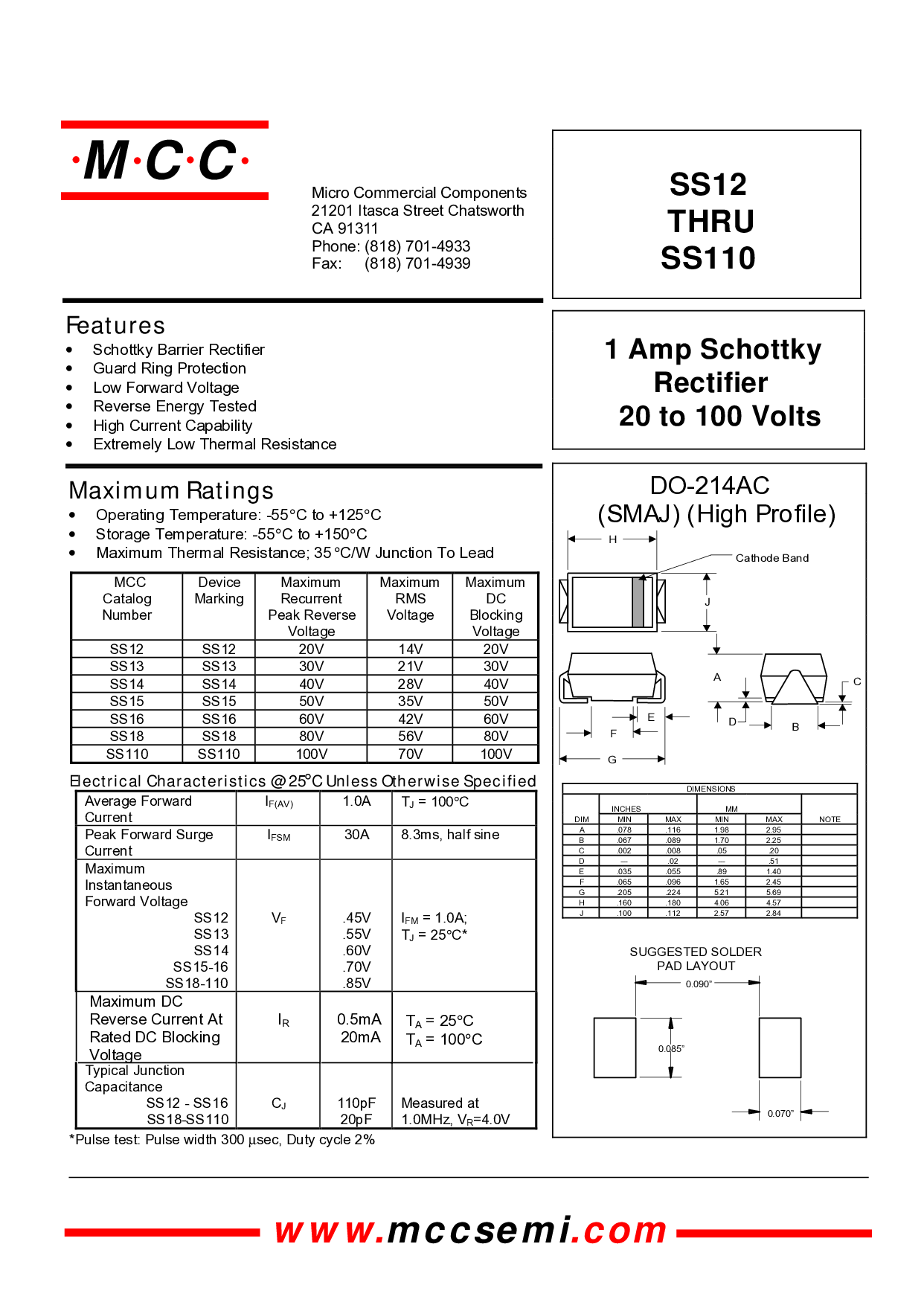 TECHNICAL SPECIFICATIONS OF SURFACE MOUNT SCHOTTKY BARRIER RECTIFIER