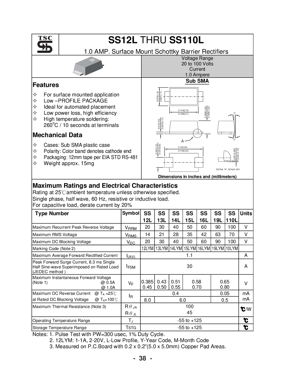 1.0 AMP. Surface Mount Schottky Barrier Rectifiers