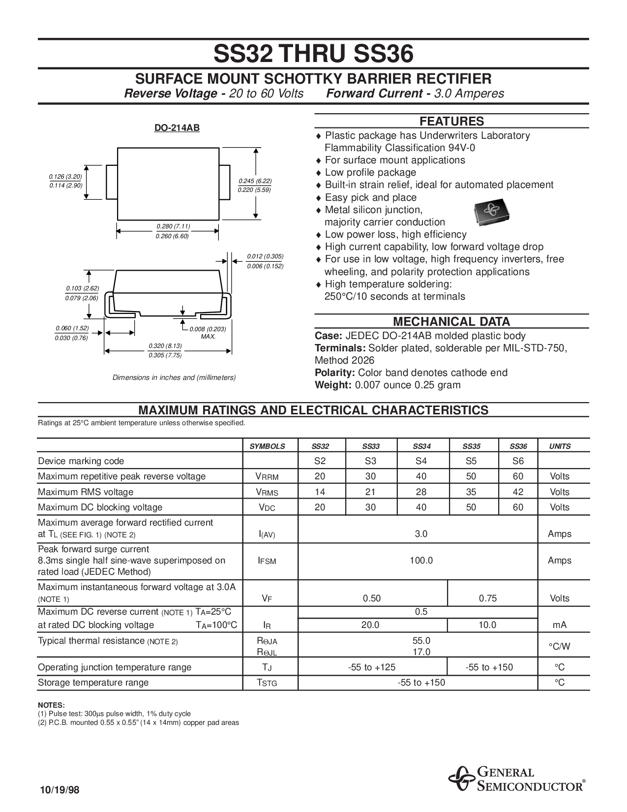 SURFACE MOUNT SCHOTTKY BARRIER RECTIFIER