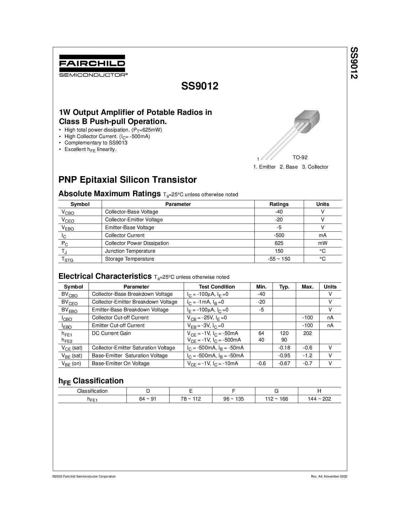 PNP (1W OUTPUT AMPLIFIER OF POTABLE RADIOS IN CLASS B PUSH-PULL OPERATION)
