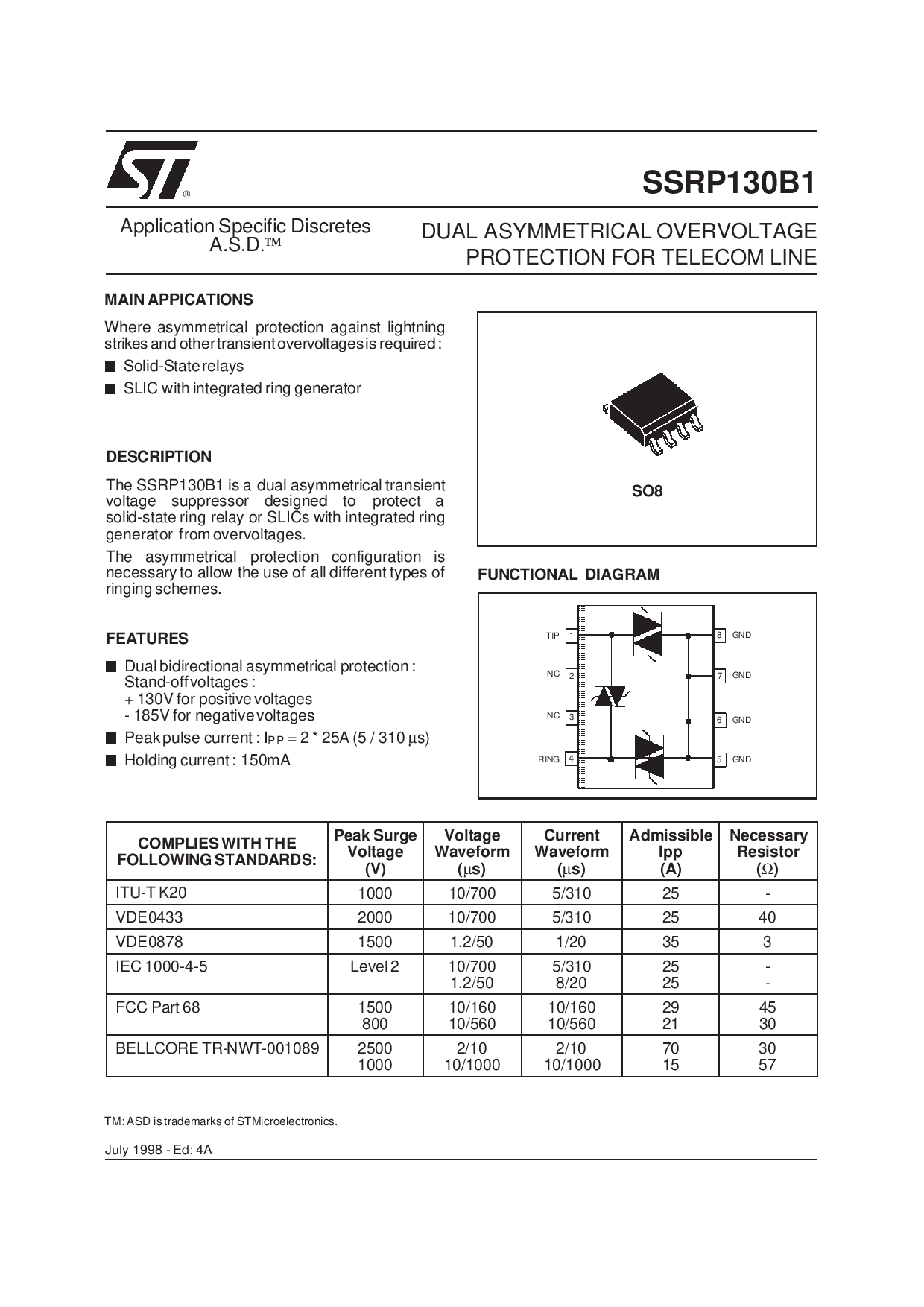 这 SSRP130B1 是 一个 双 不对称 瞬态