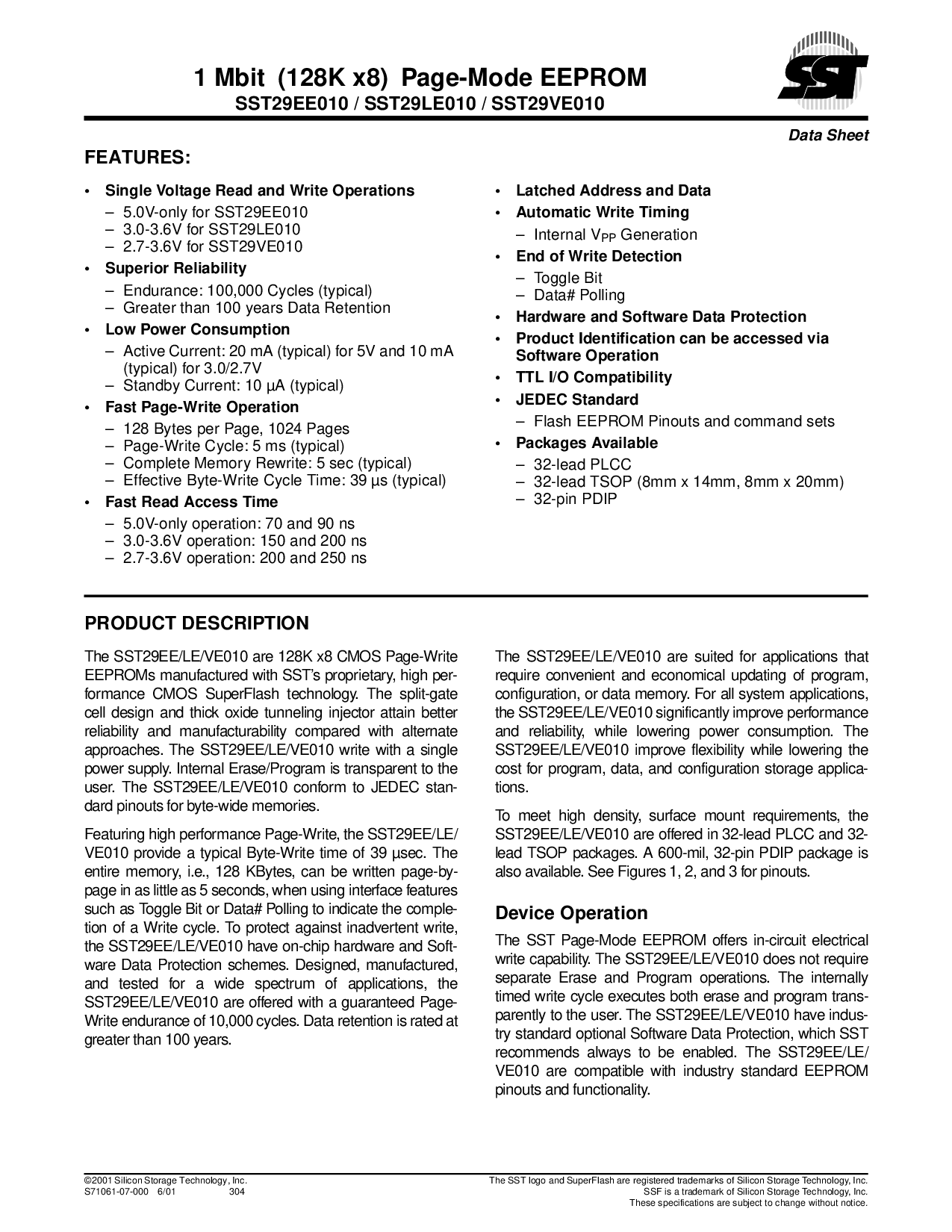 sst29ee010 / sst29le010 / sst29ve010