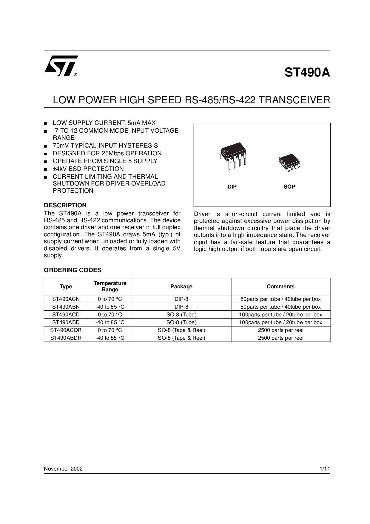 ST490ABDR -40 85 °C 所以-8 (胶带 &放大器; 卷轴) 2500 零件 卷轴