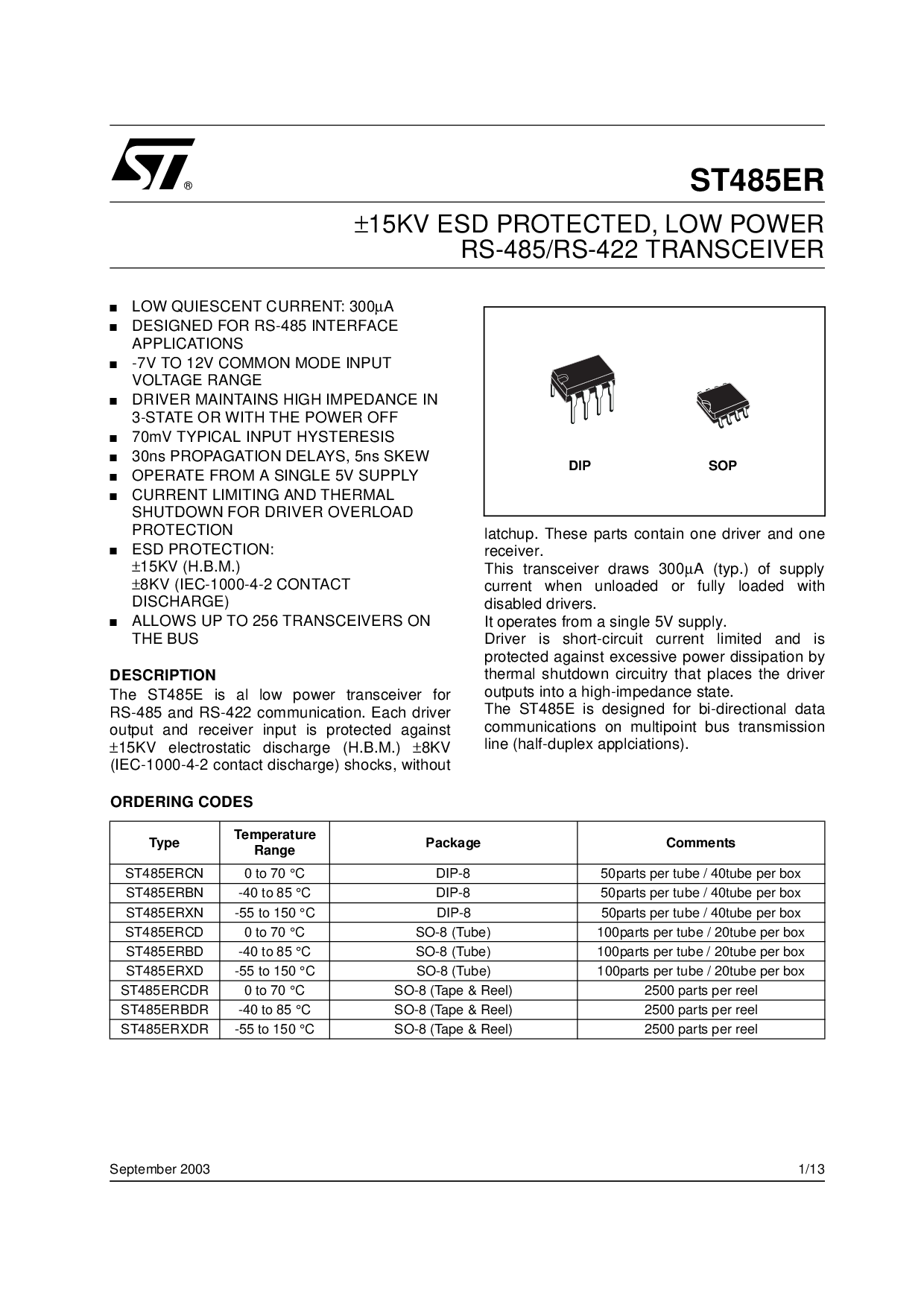 ST485ERXDR -55 至 150 °C 所以-8 (胶带 &放大器; 卷轴) 2500 零件 按 卷轴