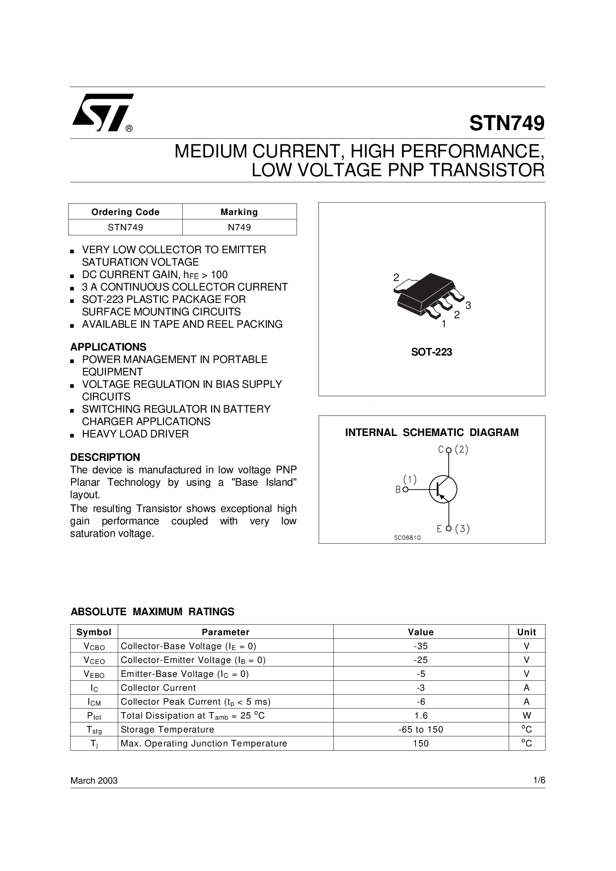 MEDIUM CURRENT, HIGH PERFORMANCE, LOW VOLTAGE PNP TRANSISTOR
