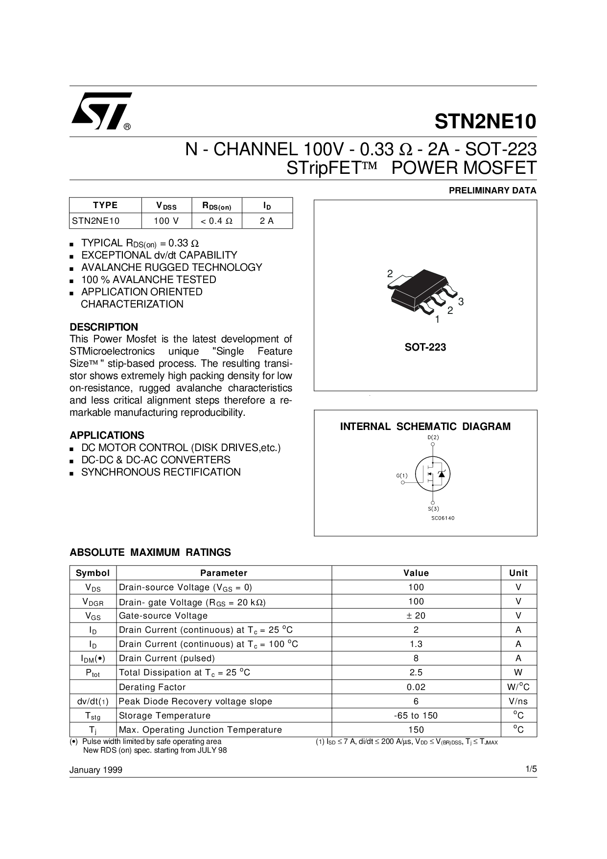 STN2NE10 100 v &指示灯; 0.4