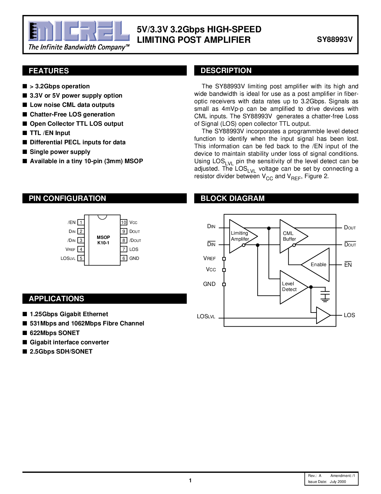 这 sy88993v 限制 post 放大器 与 其 高 和
