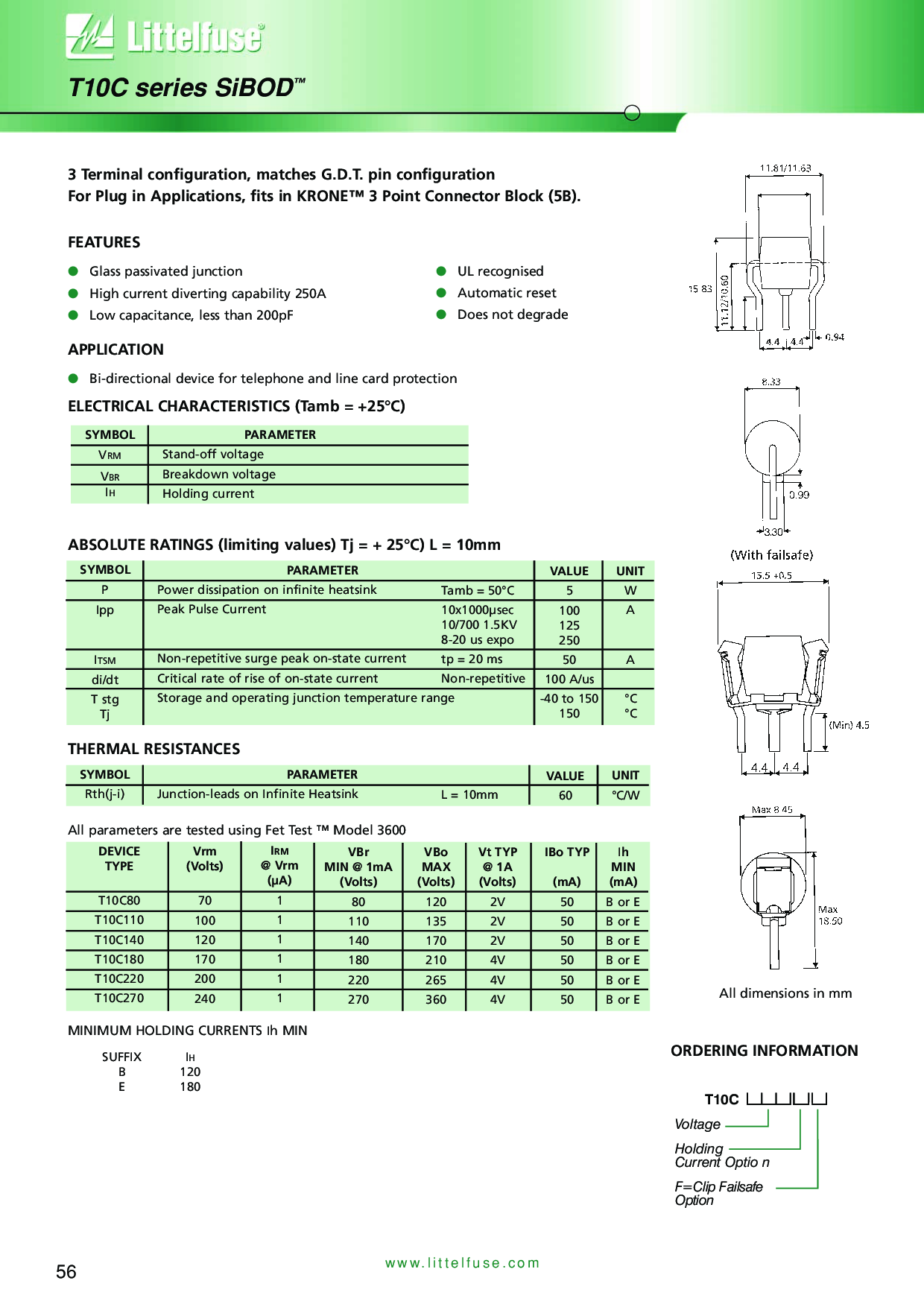 3 Terminal configuration, matches G.D.T. pin configuration For Plug in Applications, fits in KRONE⑩ 3 Point Connector Block 5B.