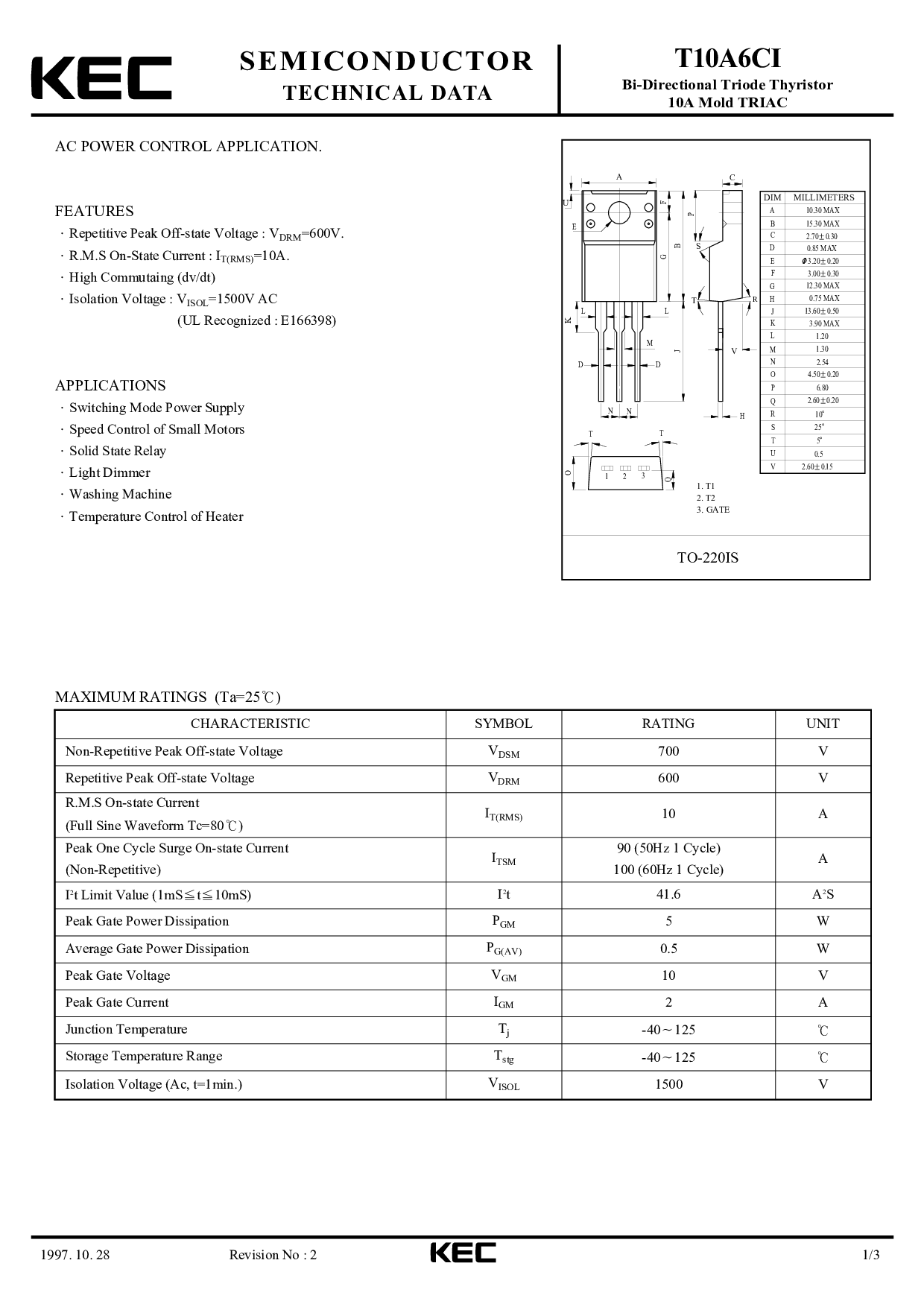 BI-DIRECTIONAL TRIODE THYRISTOR 10A MOLD TRIAC (AC POWER CONTROL)