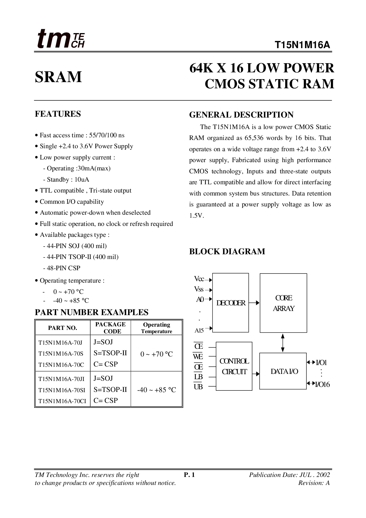 64K X 16 LOW POWER CMOS STATIC RAM