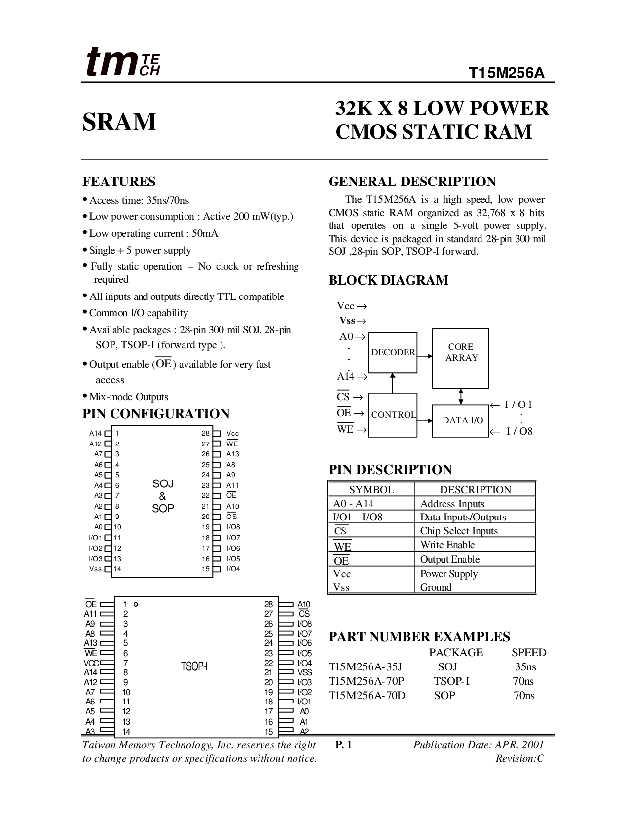 浏览型号T15M256A-35J的Datasheet PDF文件第3页