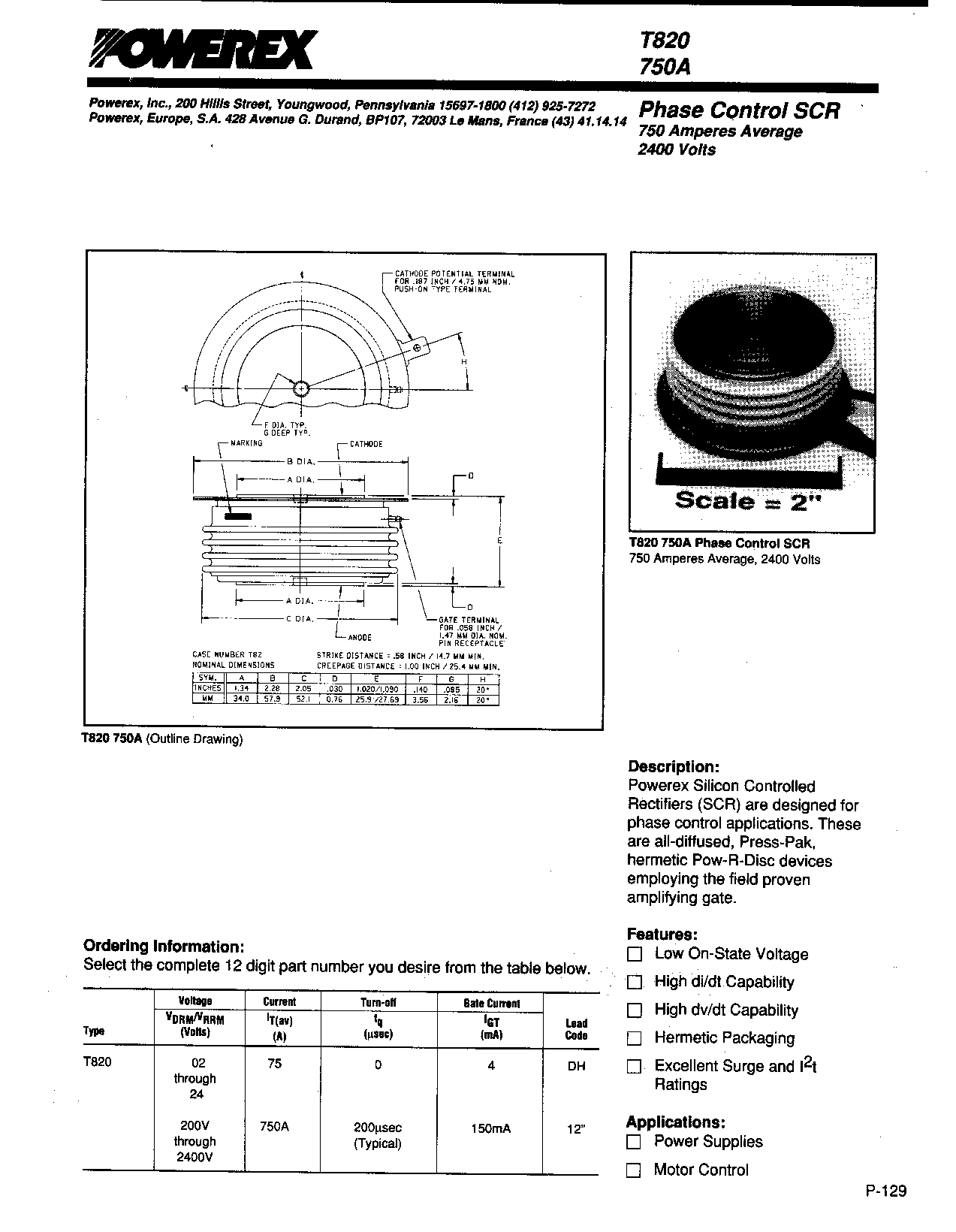 Phase Control SCR (750 Amperes Average 2400 Volts)