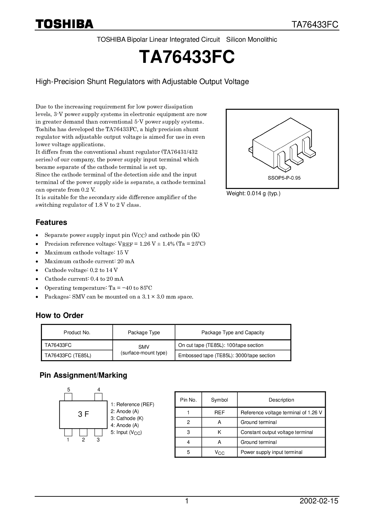 toshiba 有 已开发 这 ta76433fc, 一个 高精度 分流器