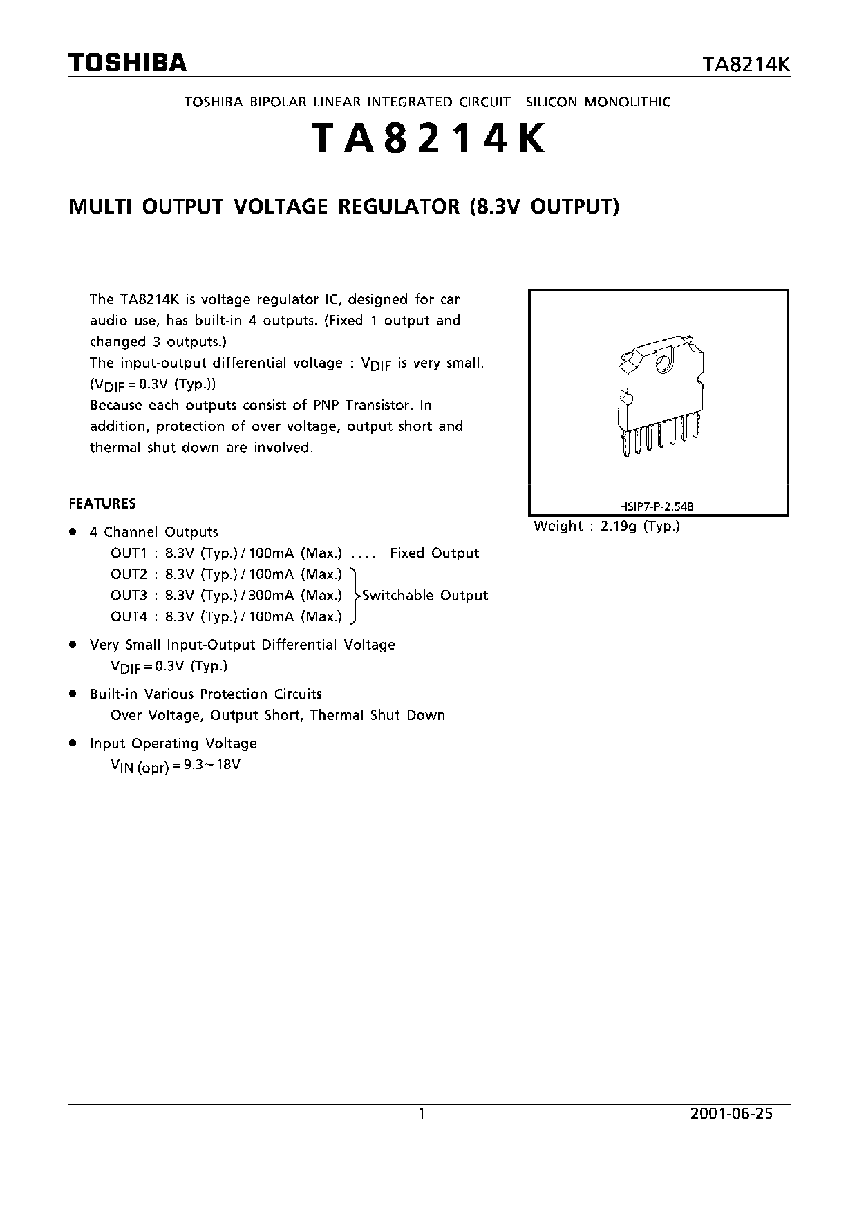 MULTI OUTPUT VOLTAGE REGULATOR (8.3V OUTPUT)