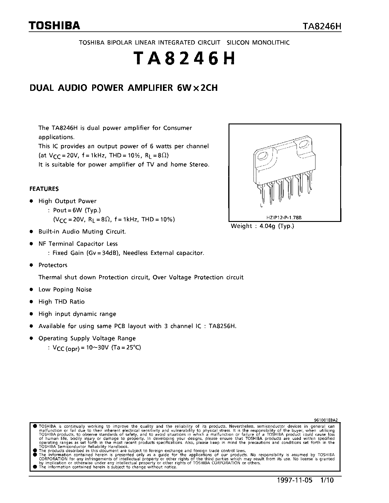 DUAL AUDIO POWER AMPLIFIER 6W x 2CH