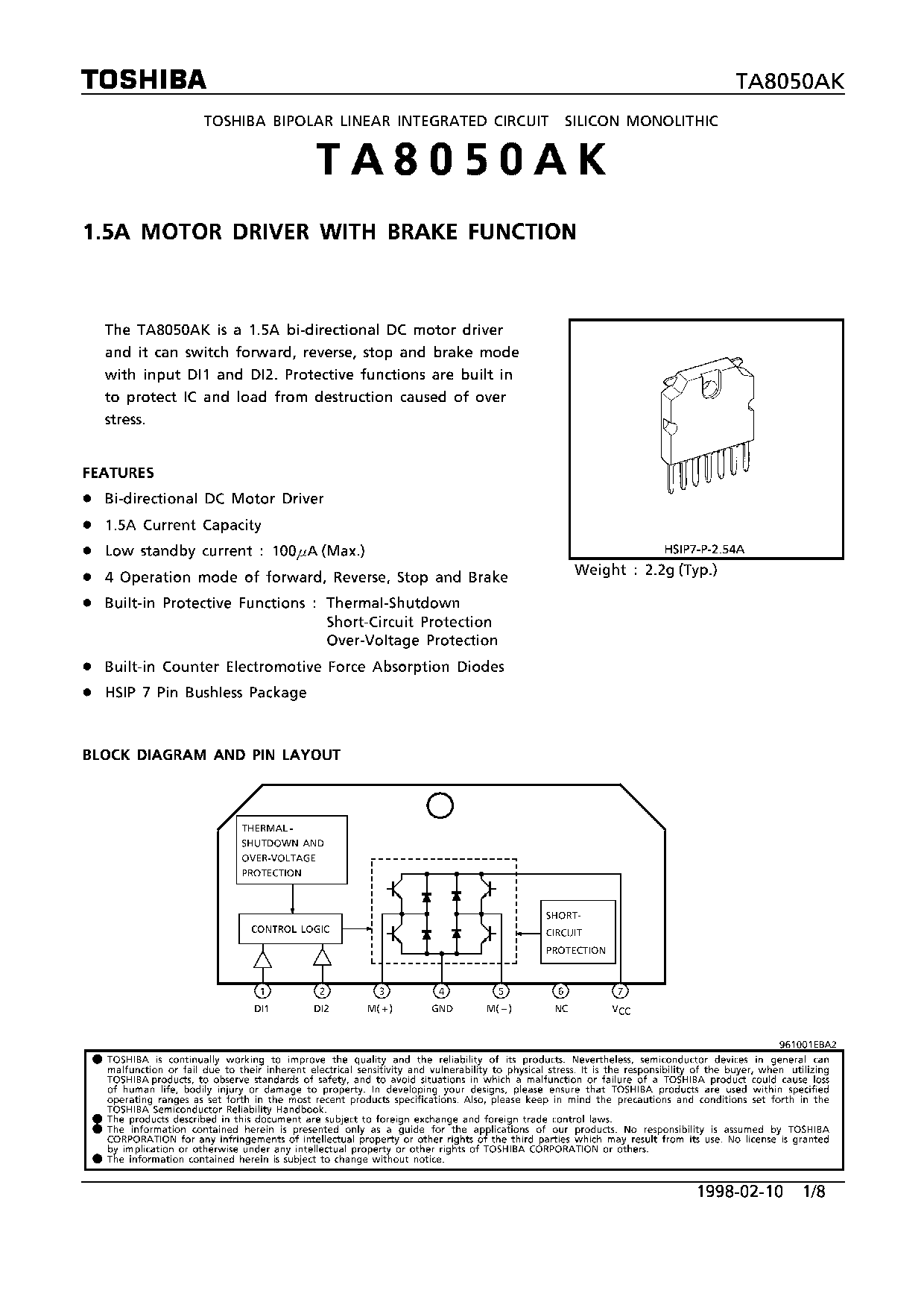 1.5A MOTOR DRIVER WITH BRAKE FUNCTION