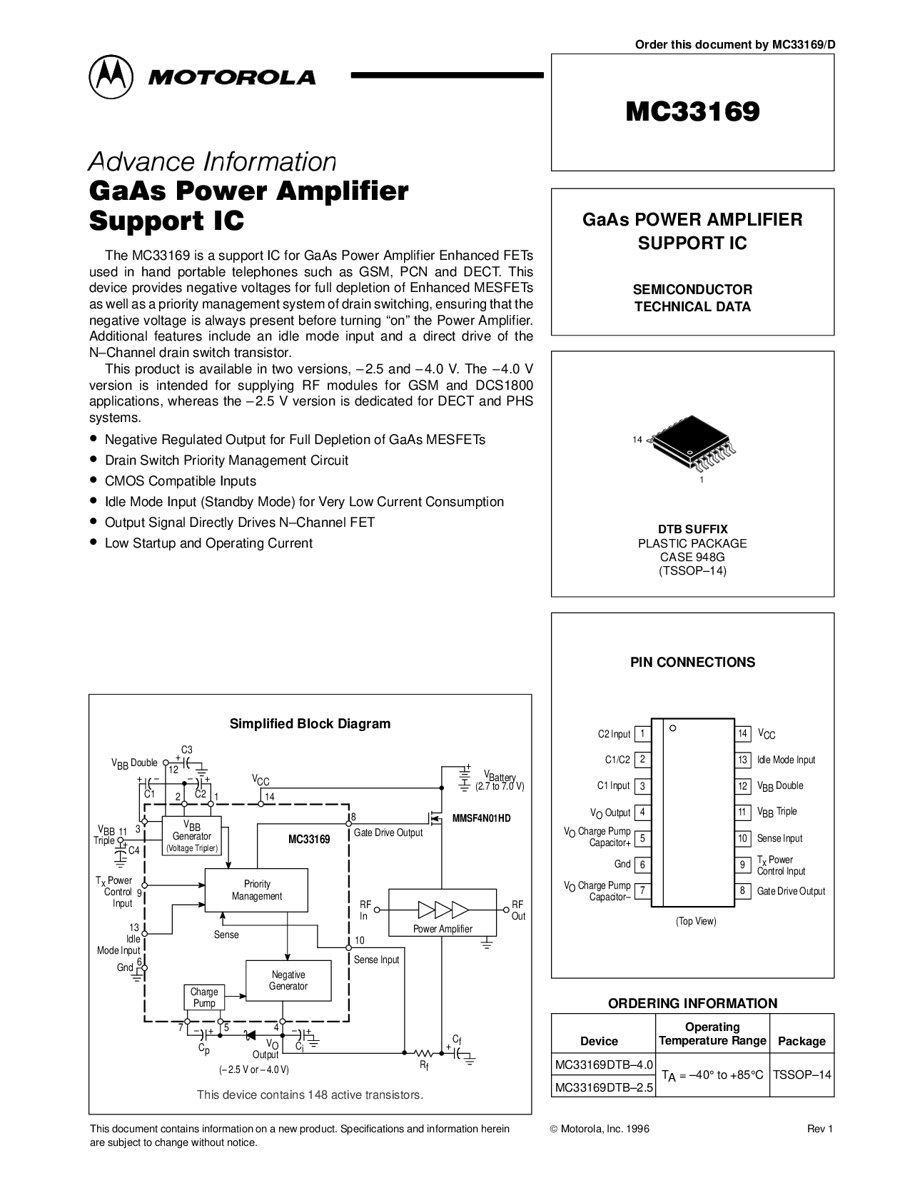 这 mc33169 是 一个 支持 集成电路 用于 gaas 电源 放大器 增强型 fets