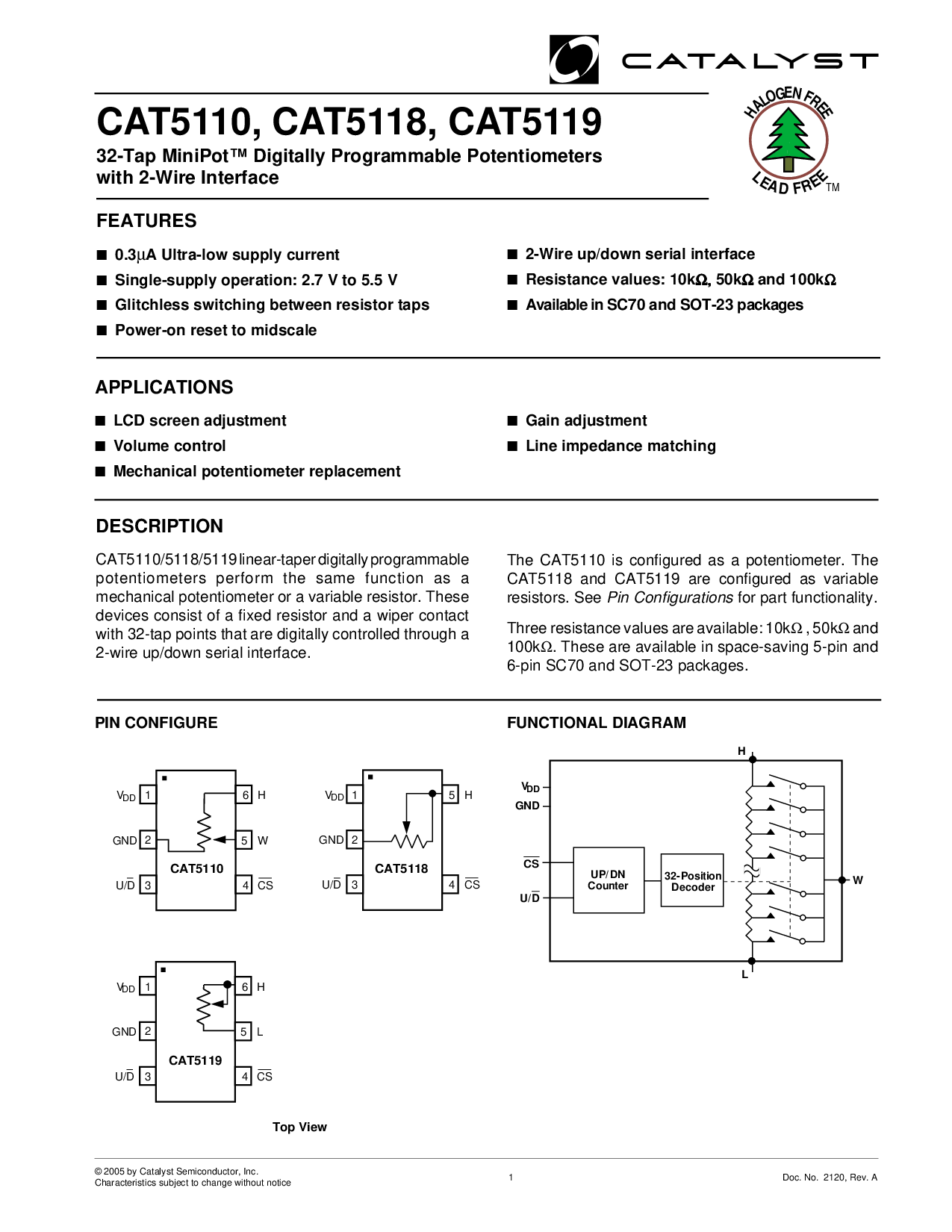 这 cat5110 是 已配置 作为 一个 电位计. 这
