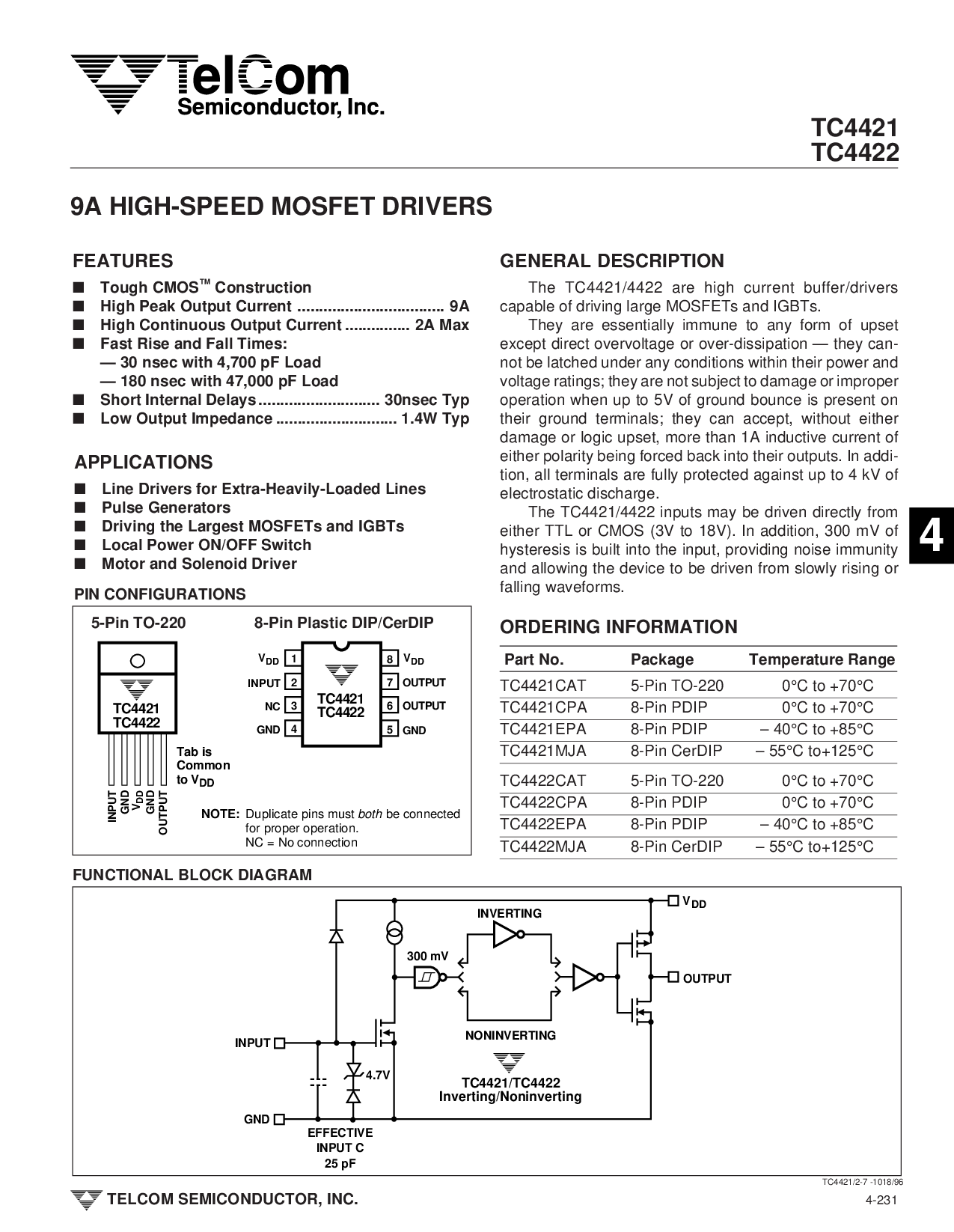 这 tc4421/4422 输入 将 是 驱动 直接 从