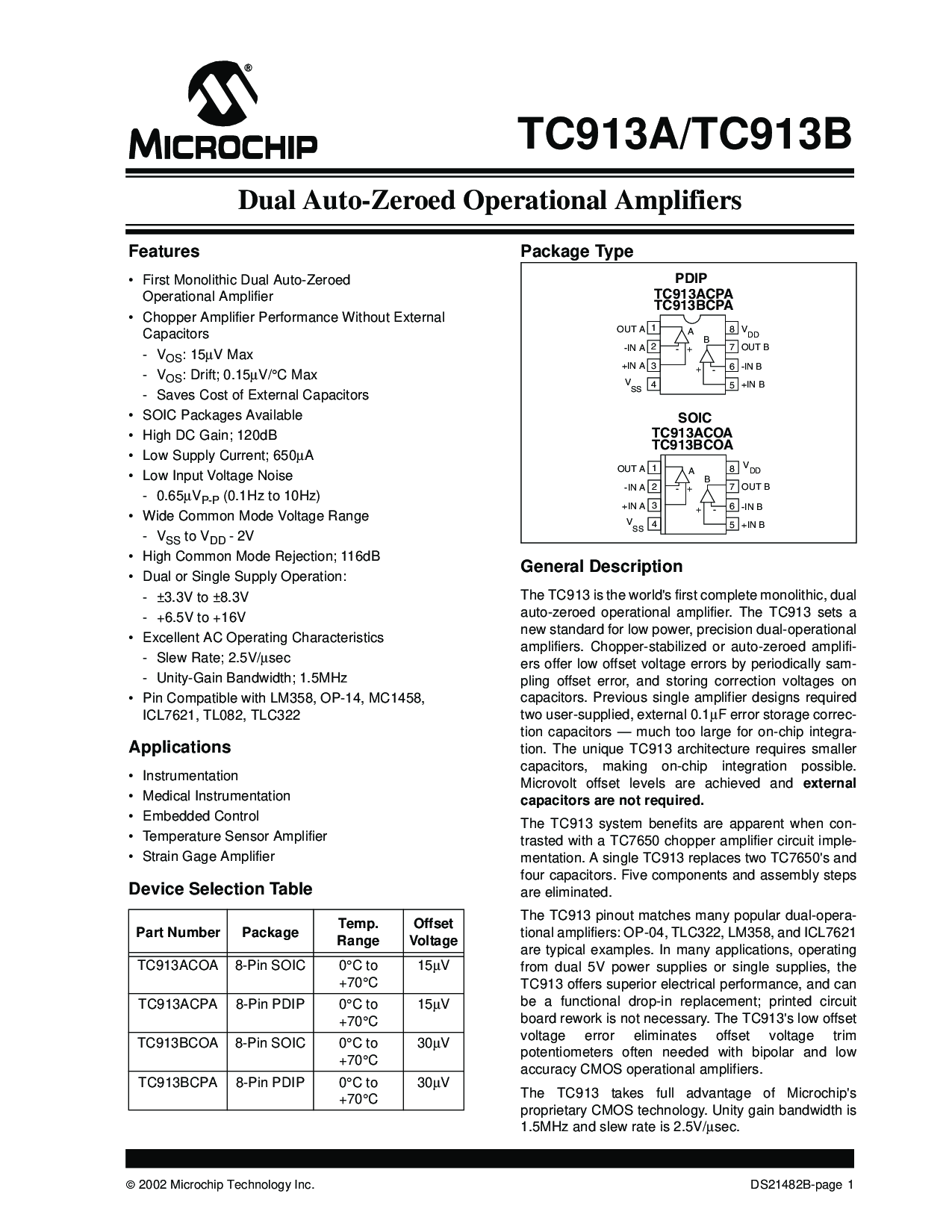 自动-归零 运营 放大器. 这 TC913 集 一个