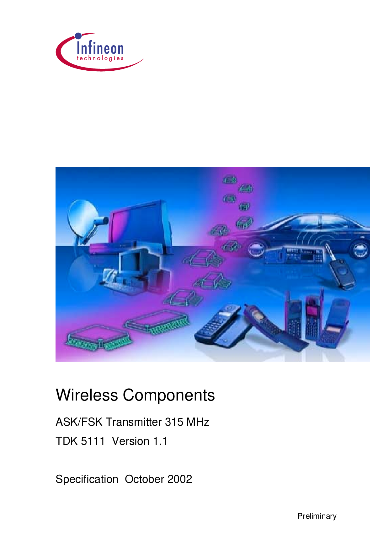 无线 组件 ask/fsk 变送器 315 mhz tdk 5111 版本 1.1 规格 october 2002 初步 | |