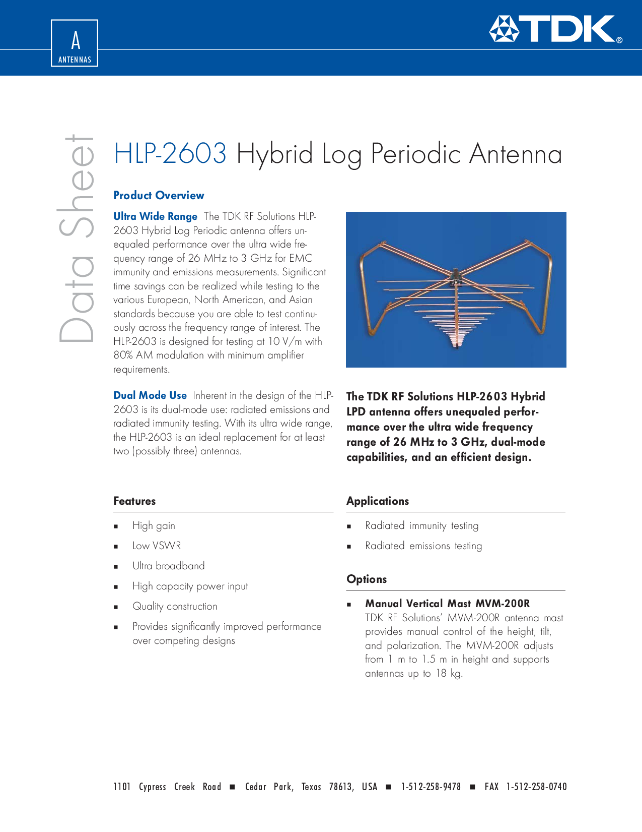tdk rf 解决方案’ mvm-200r 天线 桅杆