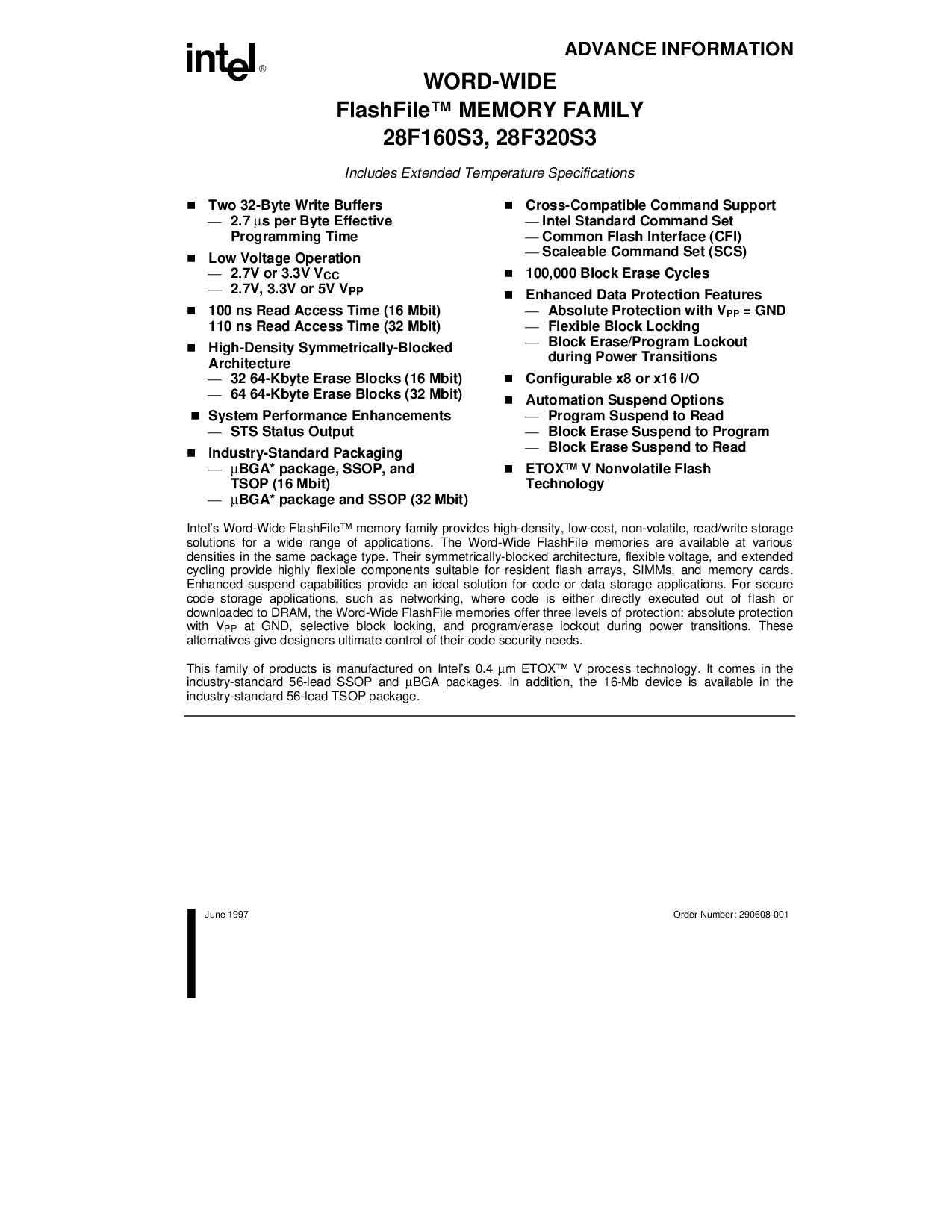 英特尔’s 字宽 flashfile™ 记忆 家庭 提供 高-密度, 低-成本, 非-挥发性, read/write 存储