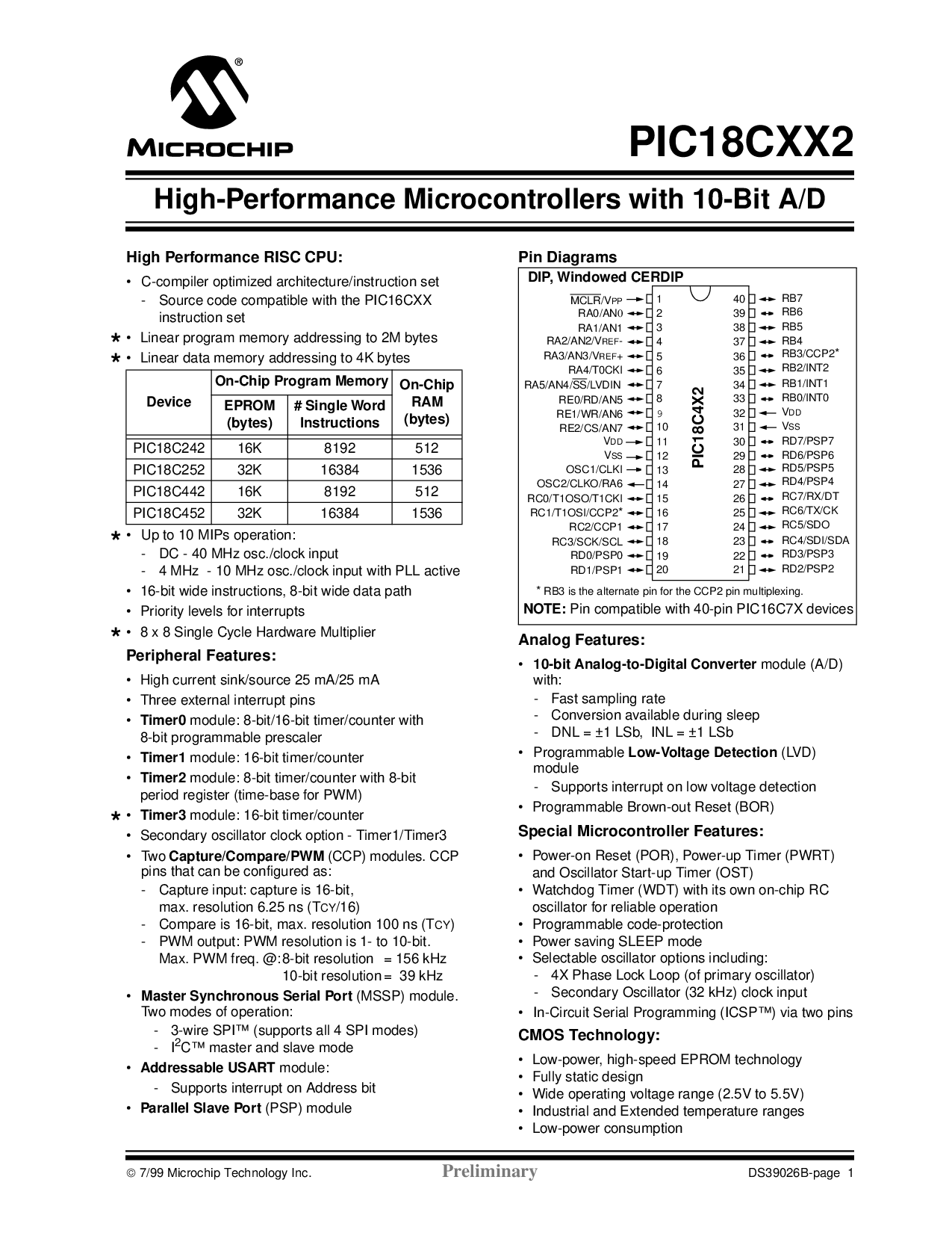 浏览型号PIC18LC252T-I/PT的Datasheet PDF文件第2页