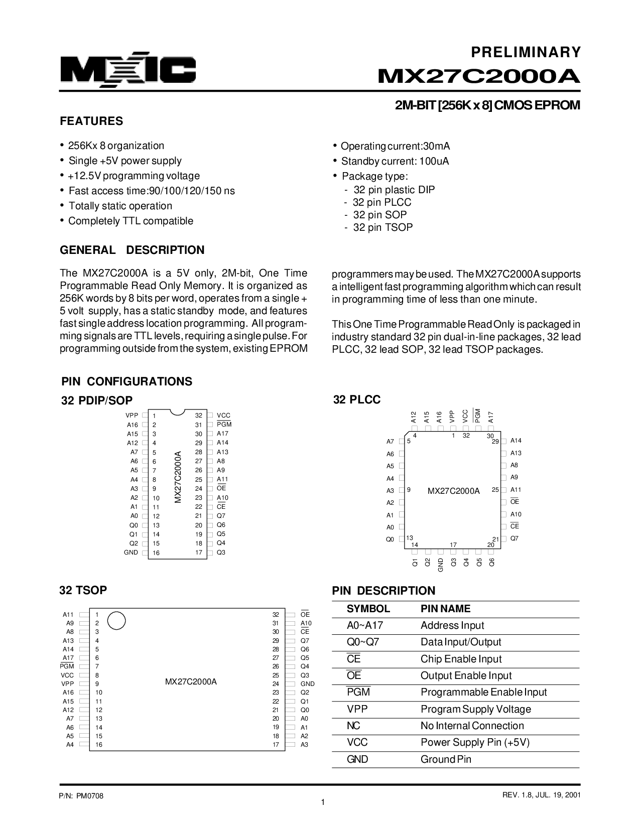 这 mx27c2000a 是 一个 5v 仅, 2m-有点, 一个 时间