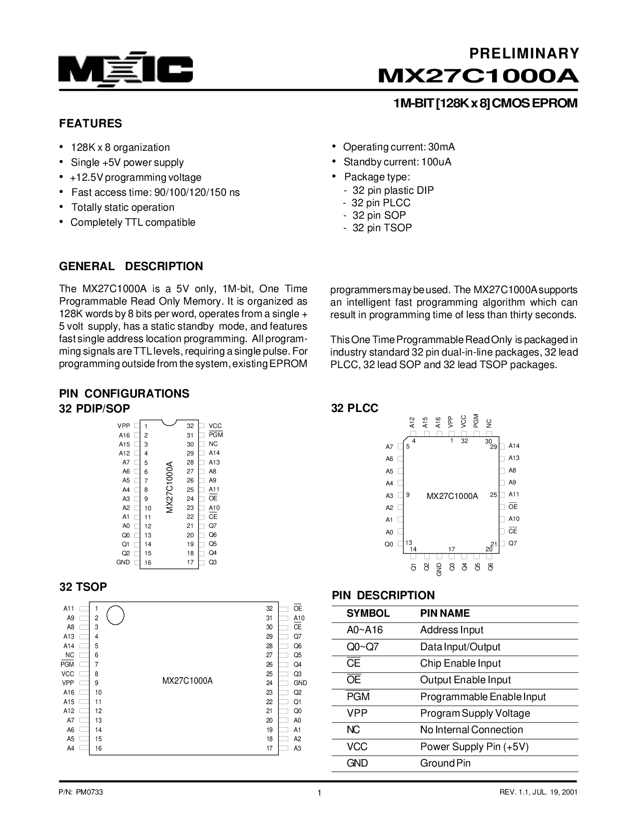 这 mx27c1000a 是 一个 5v 仅, 1m-有点, 一个 时间