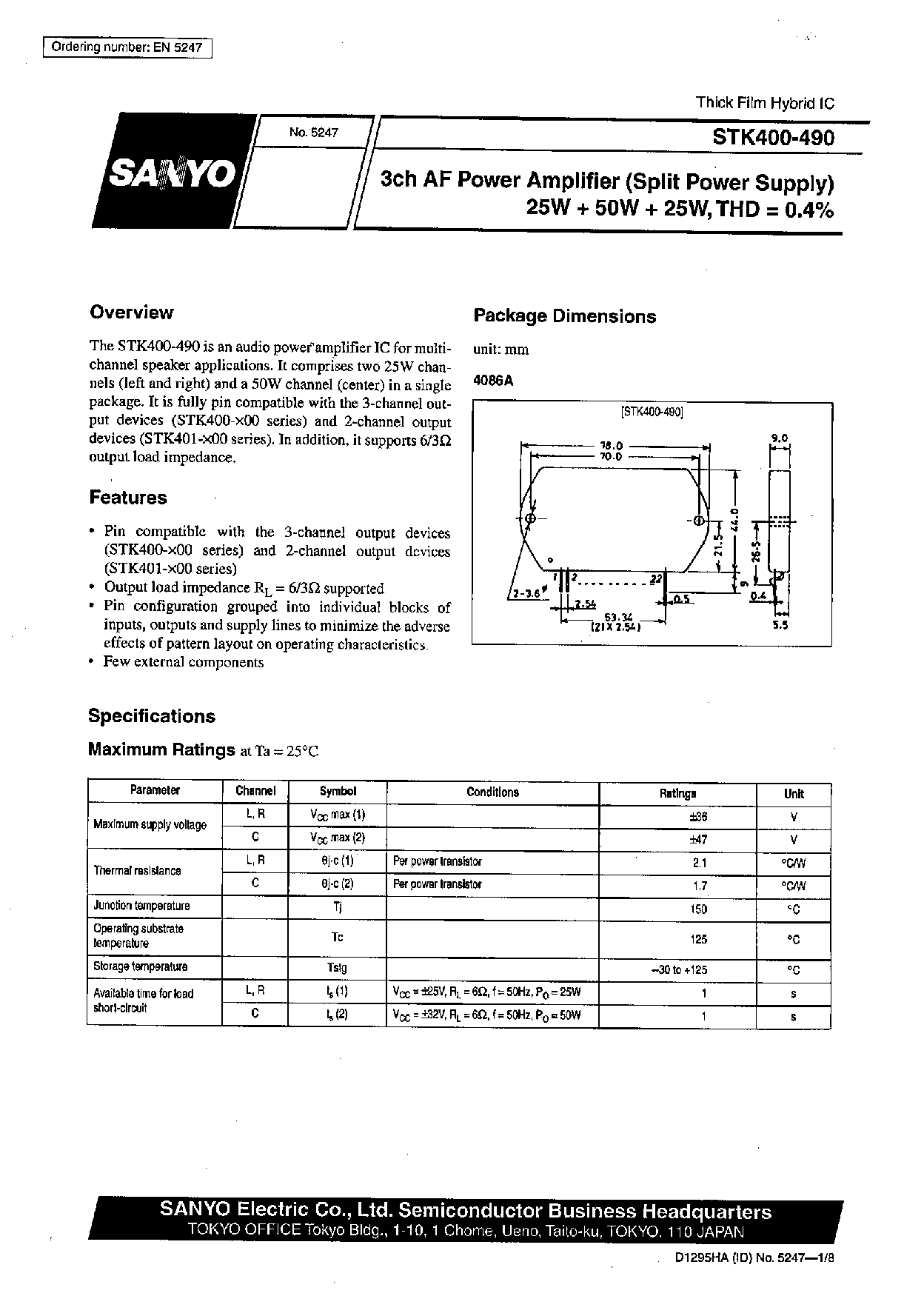 AF Power Amplifier (Split Power Supply) (70 W + 70 W min, THD = 0.4%)