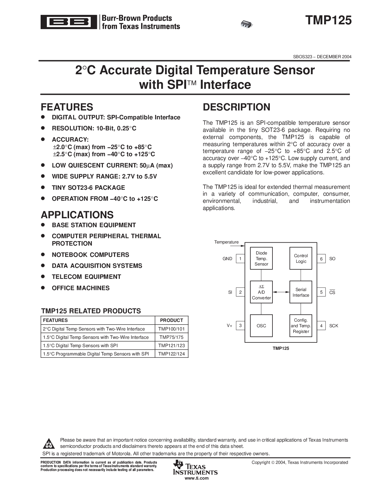 这 tmp125 是 一个 spi-兼容 温度 传感器