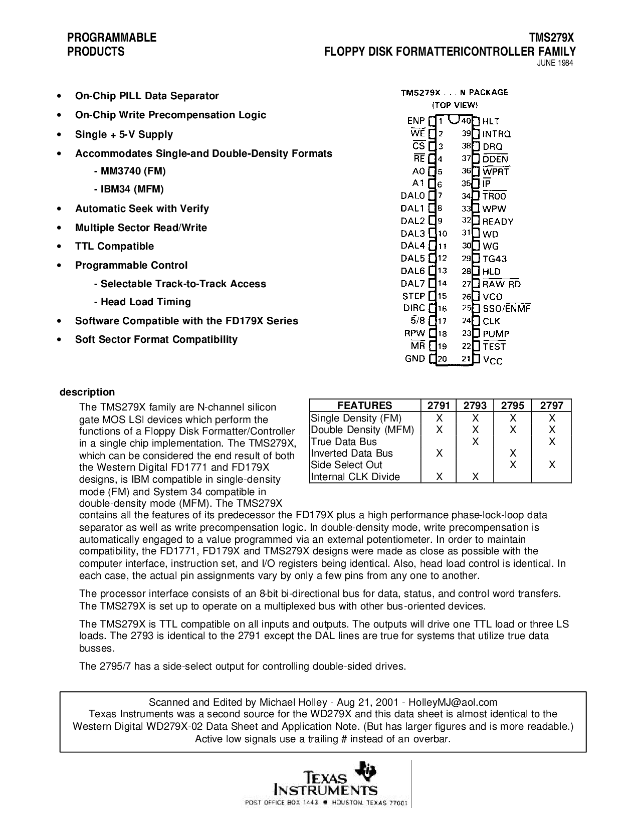 兼容性, 这 fd1771, fd179x 和 tms279x 设计 是 制造 作为 关闭 作为 可能 与 这