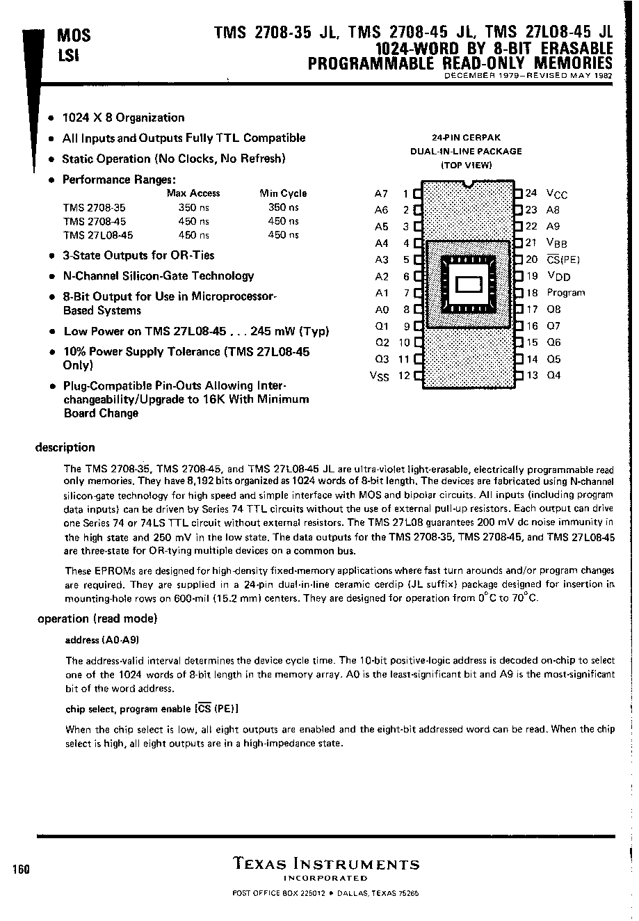 1024-WORD BY 8-BIT ERASABLE PROGRAMMABLE READ-ONLY MEMORIES