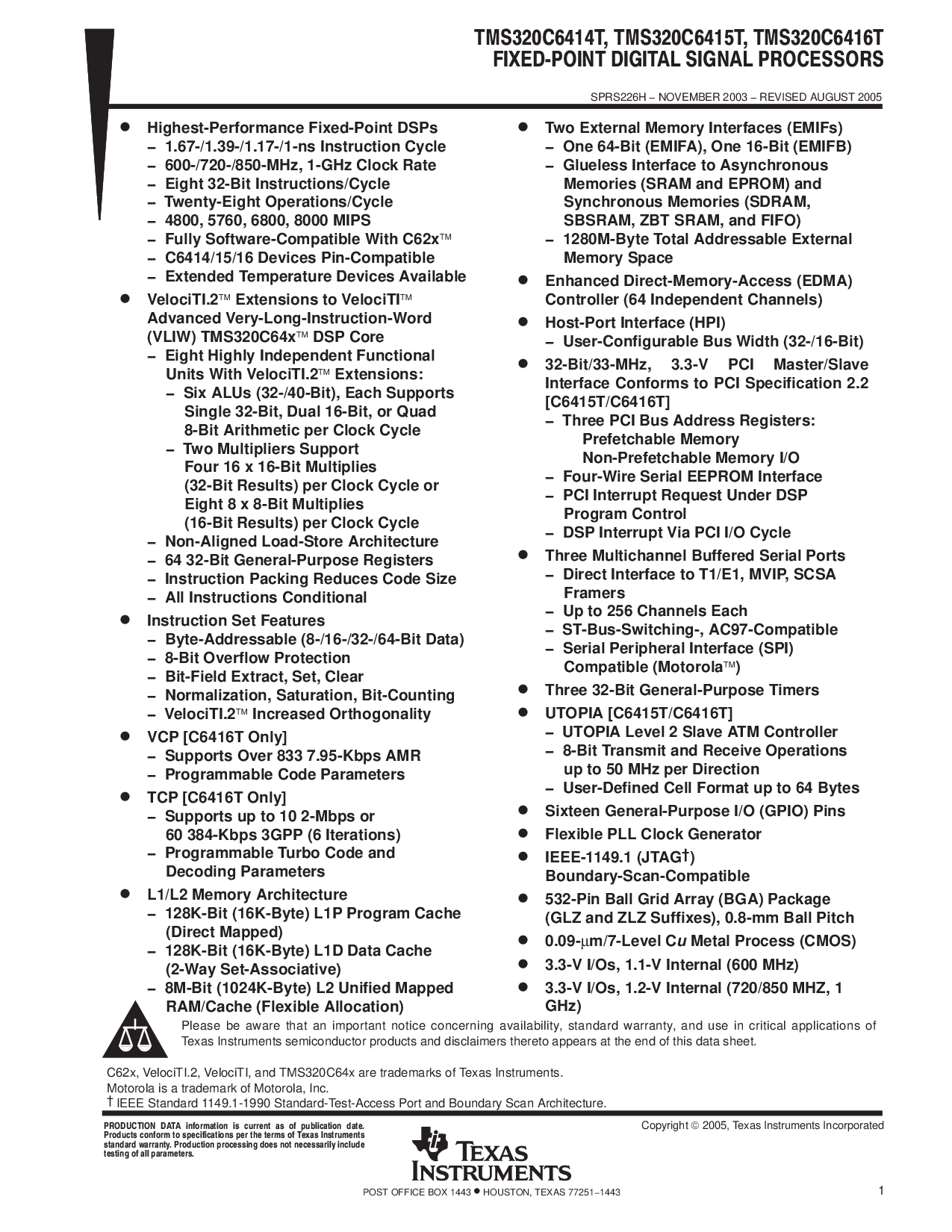 c62x, velociti.2, velociti, 和 tms320c64x 是 商标 的 德州 仪器仪表.
