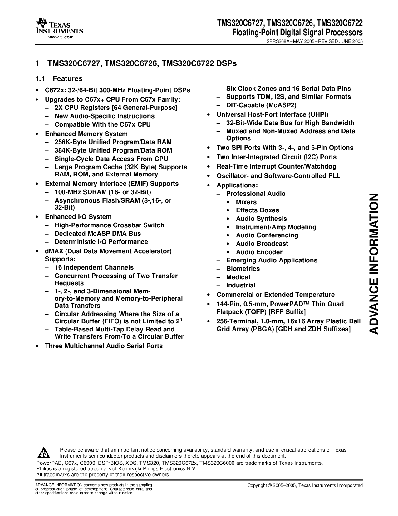 1tms320c6727,tms320c6726,tms320c6722dsps