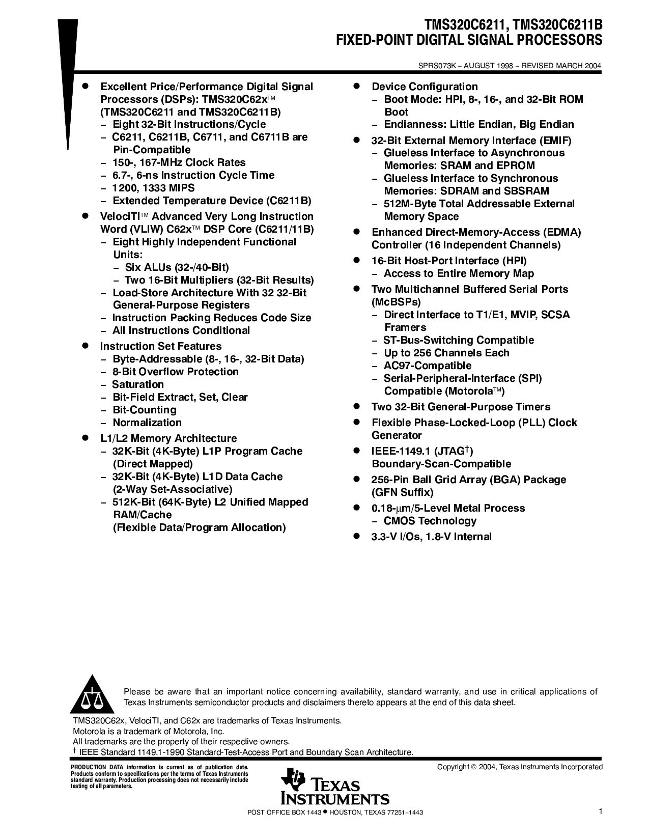 tms320c62x, velociti, 和 c62x 是 商标 的 德州 仪器仪表.