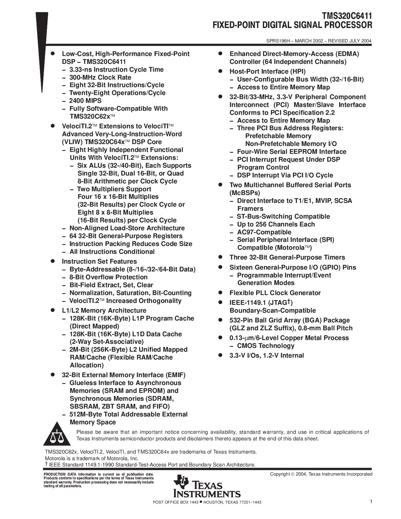 浏览型号TMX320C6411AGLZ的Datasheet PDF文件第2页