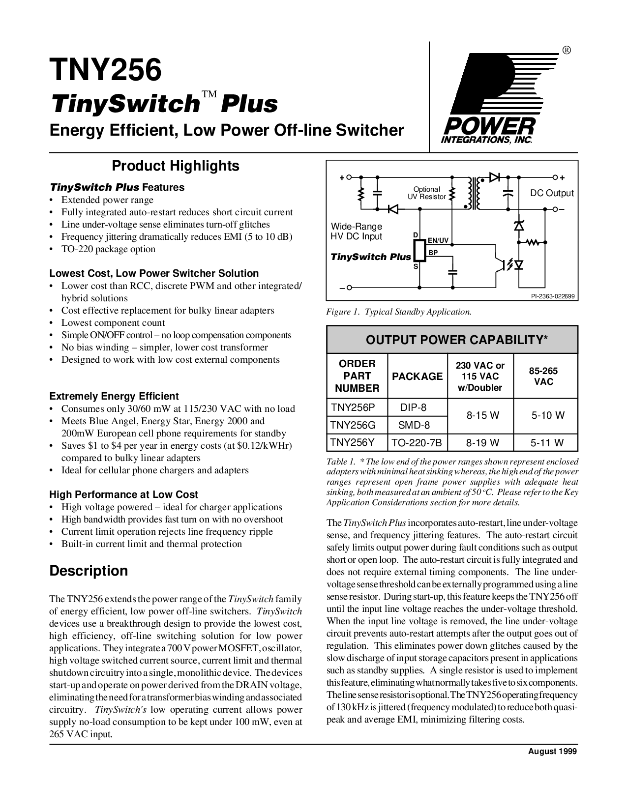 浏览型号TNY256Y的Datasheet PDF文件第2页