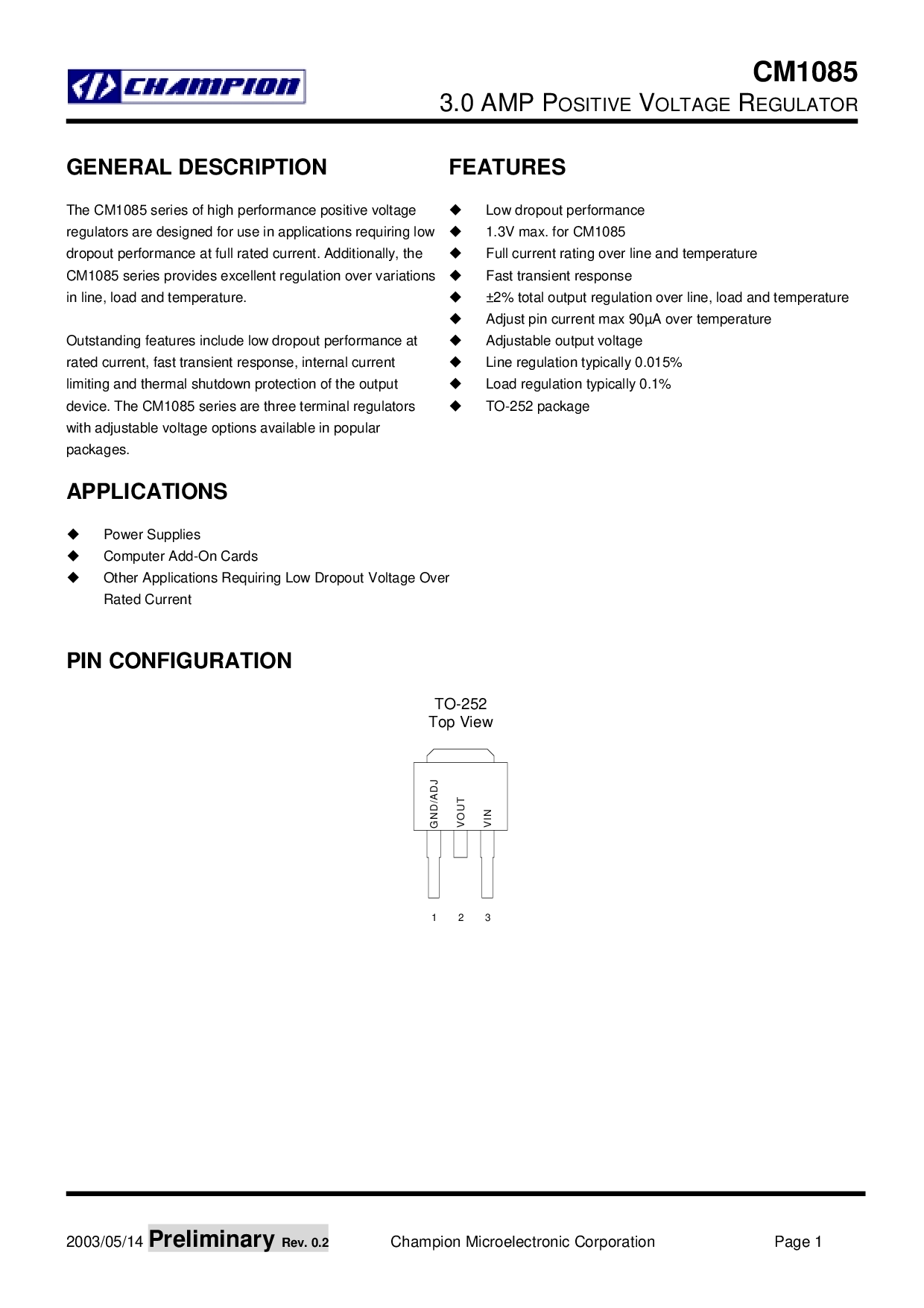 设备. 这 cm1085 系列 是 三个 终端 调节器
