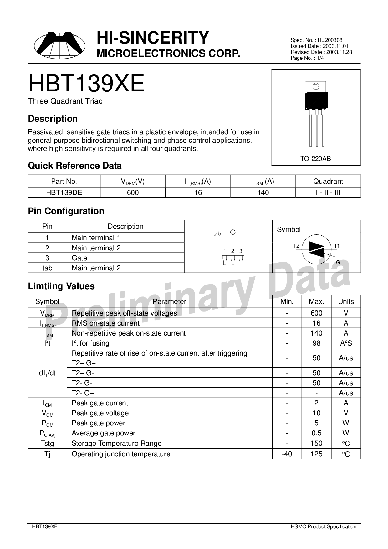 HBT139XE hsmc 产品 规格