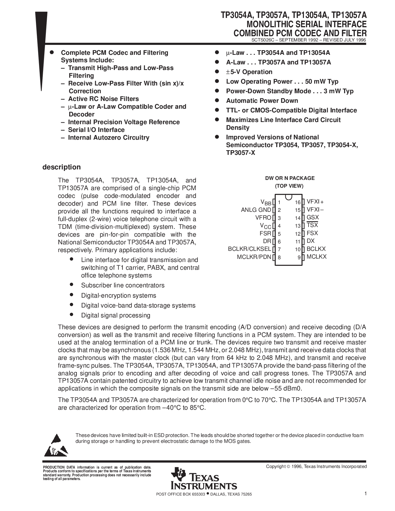浏览型号TP3054ADW的Datasheet PDF文件第7页