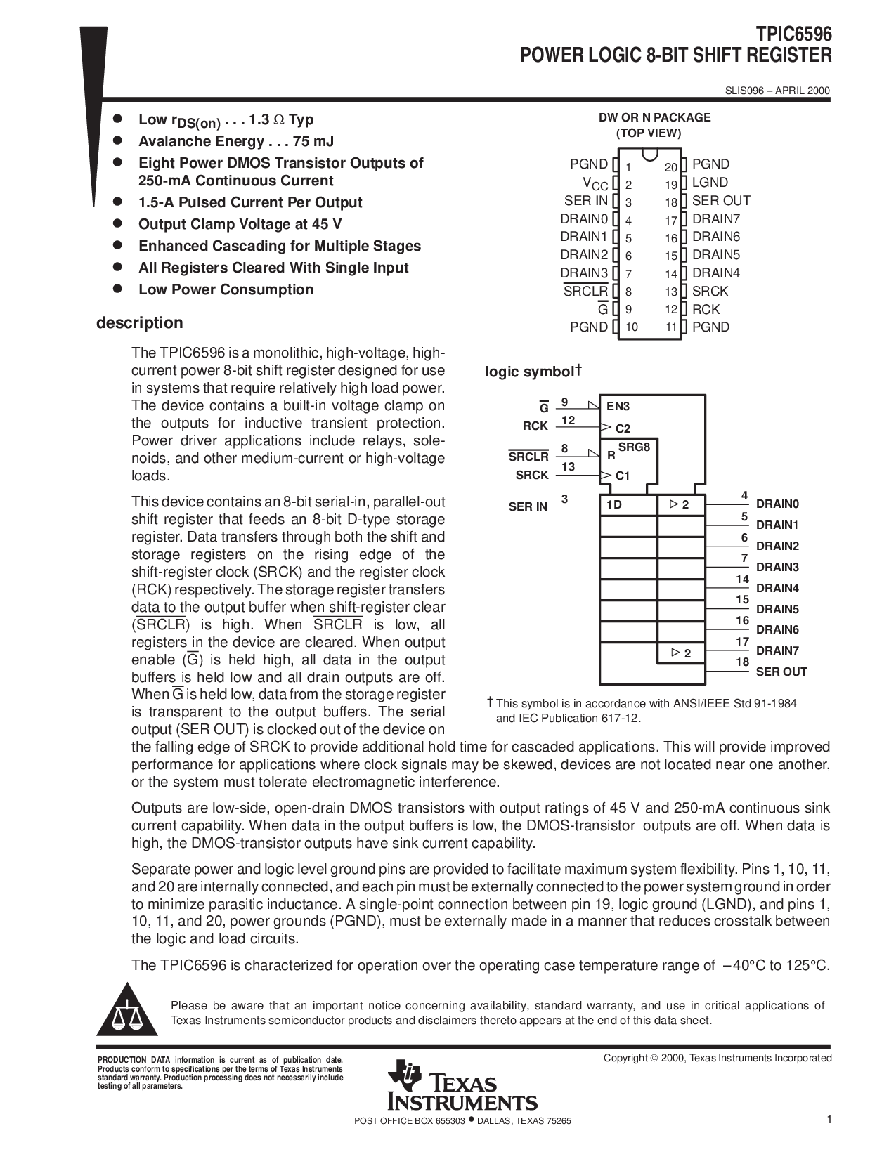 这 tpic6596 是 一个 单片, 高-电压, 高-