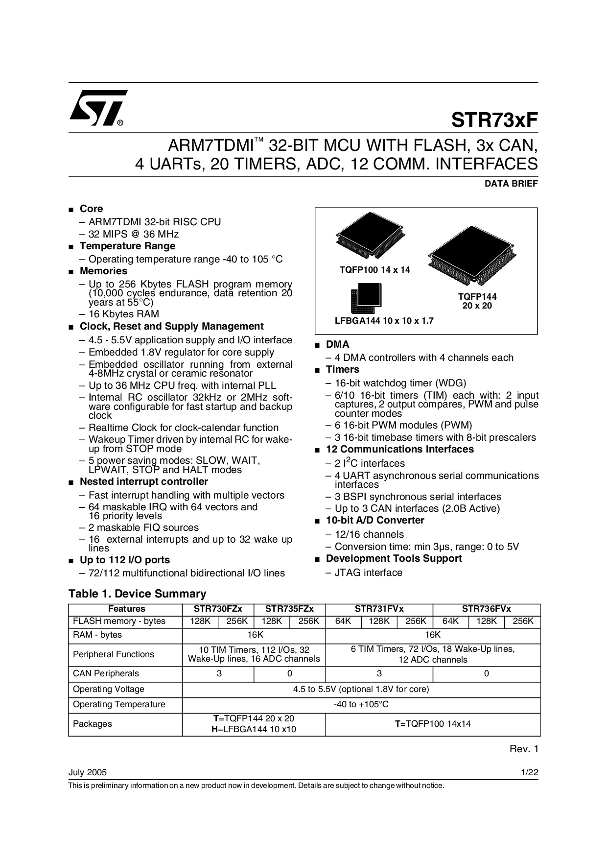 特点 STR730FZx STR735FZx STR731FVx STR736FVx
