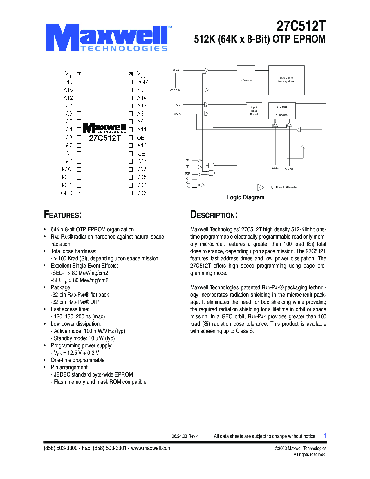 maxwell 技术’ 27c512t 高 密度 512-kilobit 一个-