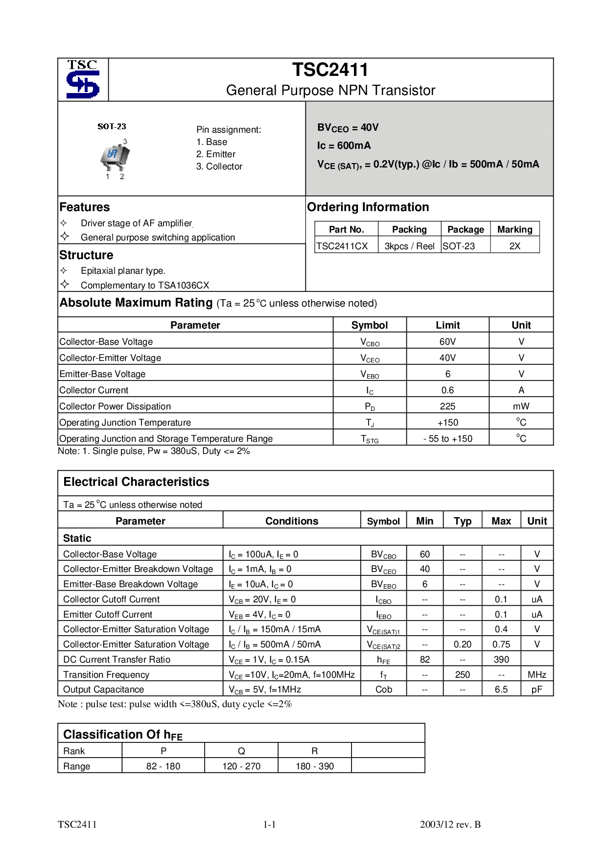 TSC2411CX 3kpcs / 卷轴 sot-23 2X