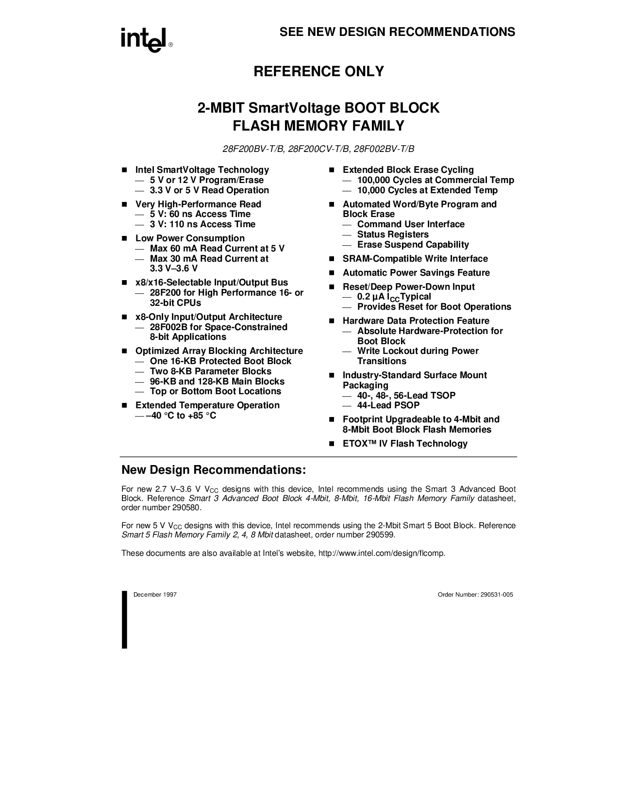 设计 与 这个 设备, 英特尔 建议 使用 这 2-mbit 智能 5 引导 块. 参考