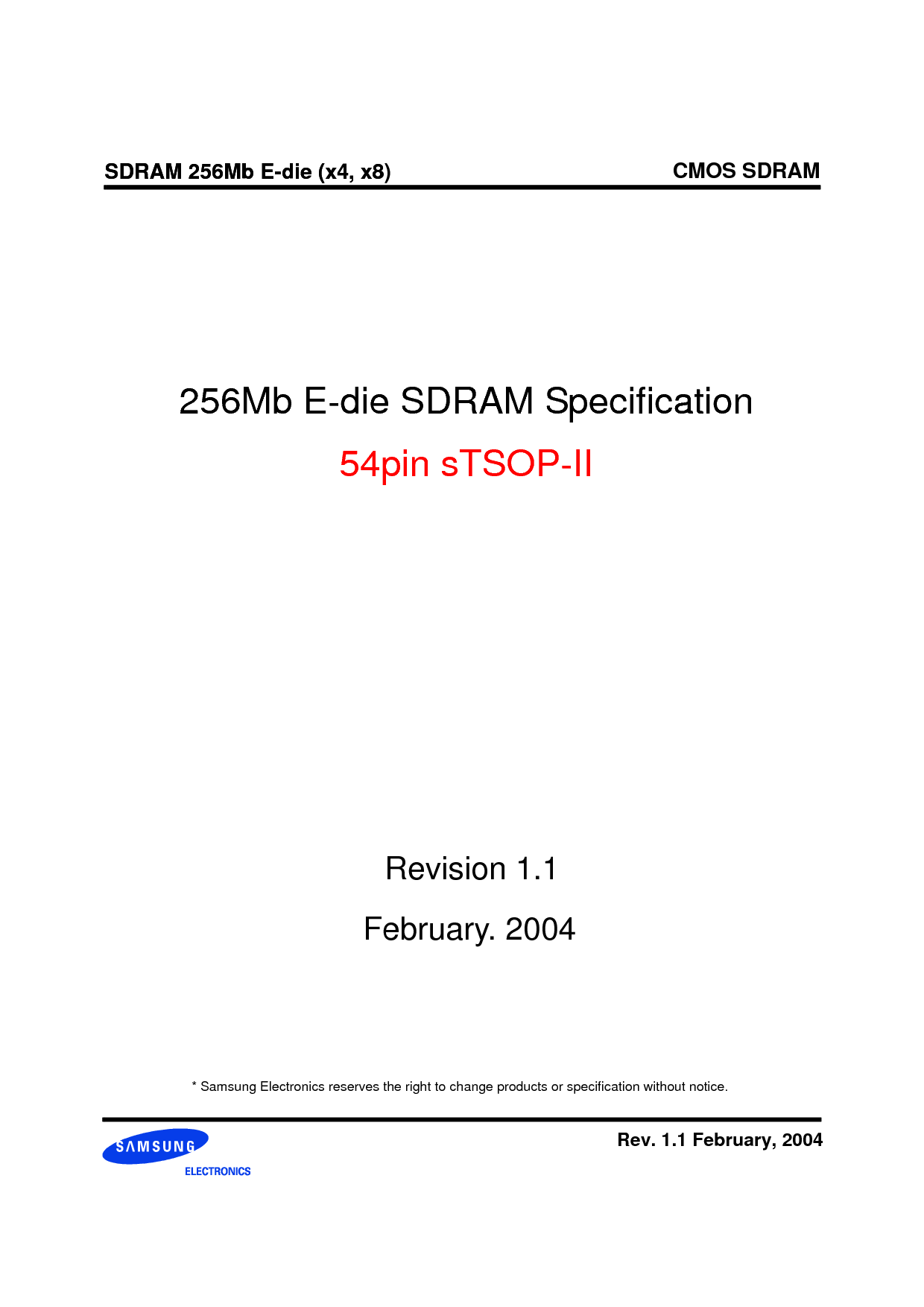 256Mb E-die SDRAM Specification 54pin sTSOP-II